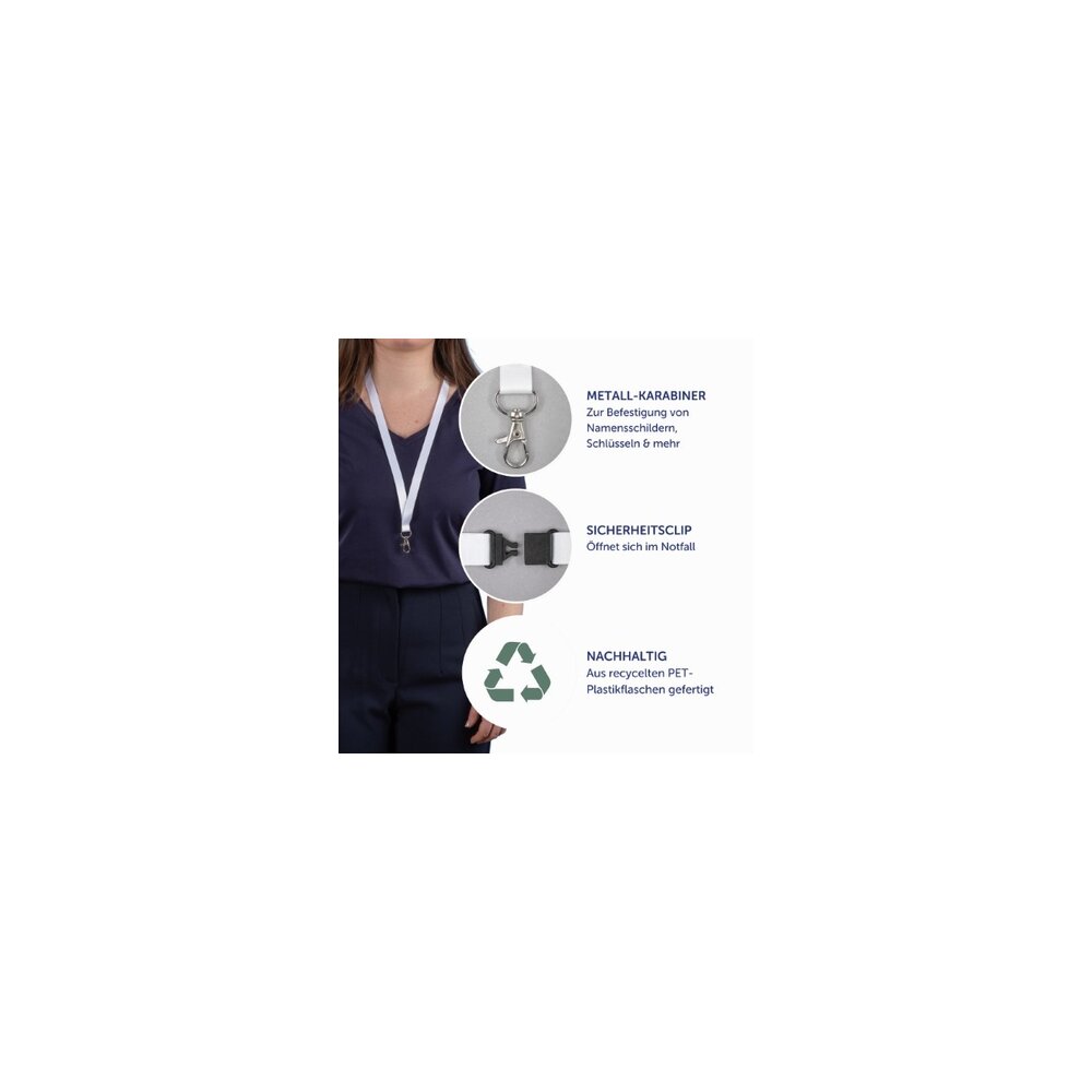 Sie planen eine Veranstaltung, ein Seminar oder Messeauftritt? Für Zusammenkünfte aller Art, ob beruflich oder privat, machen Namensschilder die Kommunikation viel einfacher, wenn Sie wissen, mit wem Sie sprechen. Wir bieten Ihnen in unserem großen und vielfältigen Sortiment mit verschiedenen Lösungen an Namensauszeichnungen diese Umhängebänder, auch Lanyards genannt.