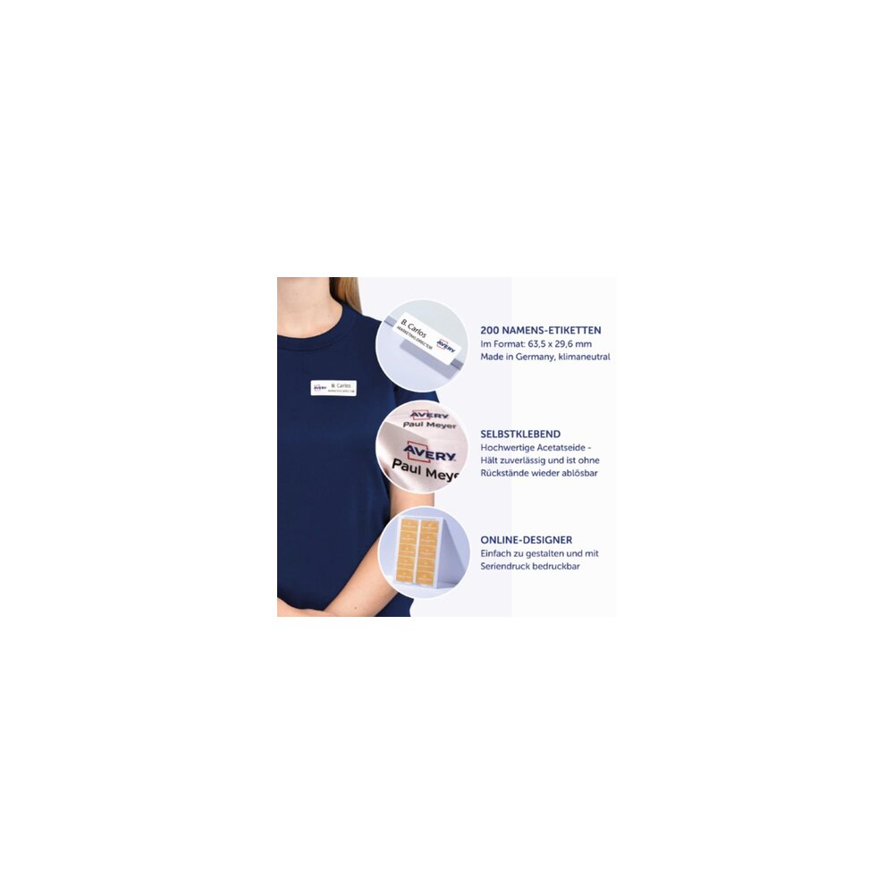 Qualität vom Etiketten-Experten: die ablösbaren Namensetiketten Ihnen die Organisation von Veranstaltungen, Seminaren und Konferenzen. Die Namens-Etiketten sind die perfekte Alternative zu Plastikschildern mit Nadel oder Clip. Die Namensschilder aus Acetatseide haften zuverlässig auf Kleidung und Textilien und lassen sich rückstandsfrei wieder ablösen. Die Rückseiten-Stanzung der Namensschilder erlaubt das einfache Heraustrennen der Namensetiketten samt Trägerfolie für eine spätere Verwendung. Die Textil-Etiketten sind nicht geeignet für Leder, Seide, Samt und andere empfindliche Textilien. Die Namens-Etiketten bieten einen garantiert staufreien Druckerdurchlauf auf allen gängigen Laser-Druckern. So arbeiten Sie effizient wie stressfrei und schaffen sich wertvolle Zeit für die wirklich wichtigen Dinge.
