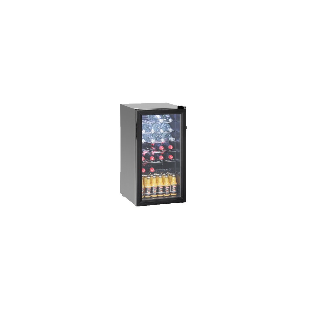 Der Flaschenkühlschrank im schicken Design lässt sich aufgrund seiner schmalen Ausführung nahezu überall integrieren. Als Stand- oder Auftischgerät in Restaurants, Bars, Cafés, Kantinen, Kiosken, Imbissen oder Tankstellen. Mit seinem regelbaren Temperaturbereich bietet das Gerät verlässliche Kühlung für verschiedenste Getränkearten - von Wasser bis Wein. Mit sechs stabilen Ablagen lagern Sie bis zu 28 Flaschen geordnet und zugänglich - perfekt für den schnellen Zugriff im hektischen Gastro-Alltag. Die integrierte LED-Deckenbeleuchtung bringt Getränke attraktiv zur Geltung - energiesparend und separat schaltbar für maximale Flexibilität im Betrieb.