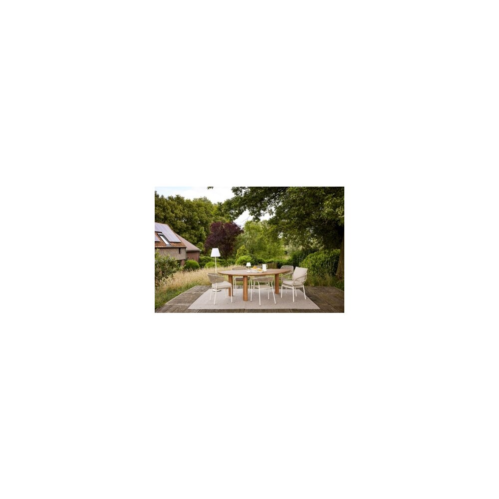 Der Tropea-Stuhl verleiht Ihrem Essbereich im Freien mit seinem eleganten Design einen Hauch von Stil. Sein robustes Gestell in Kombination mit Sitzfläche und Rückenlehne aus geflochtenem Seil garantiert Langlebigkeit und ein ansprechendes Design. Die farblich abgestimmten Kissen sorgen für zusätzlichen Komfort. Dieser Stuhl ist ideal, um entspannte Mahlzeiten zu genießen und Ihre Terrasse oder Ihren Garten optisch aufzuwerten.