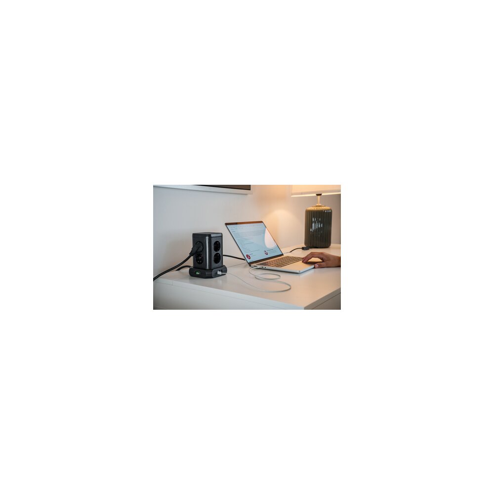 Der Steckdosenturm überzeugt vor allem durch das platzsparende Turmdesign und die flexiblen Einsatzmöglichkeiten der Mehrfachsteckdose wie z.B. im Haushalt, Büro oder als Stromversorgung des Gaming-Setups. Durch die Platzierung und die 45°-Anordnung der Steckdosen, können alle Steckplätze problemlos genutzt werden, selbst bei großen Winkelsteckern. Die 3 USB-Ladebuchsen ergänzen die Steckdosenleiste somit perfekt.