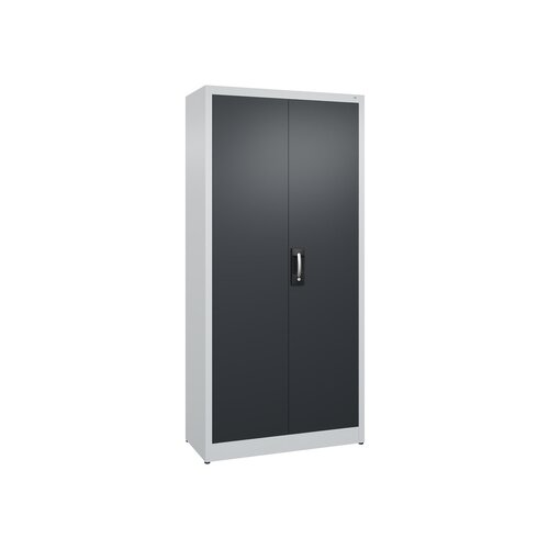 Büroschrank Acurado. Korpus aus stabiler Stahlkonstruktion mit hochwertiger Einbrennbeschichtung für hohe UV-Beständigkeit. Mit Bodengleitern als praktischem Schrank- und Fußbodenschutz. Hohe Flexibilität der Inneneinrichtung durch Höhenverstellbarkeit im Raster. Türen mit geschlossenen Seitenprofilen und verdeckten Schließstangen für höchste Stabilität und Einbruchsicherheit, mit Softanschlag. Türaufhängung oben und unten in Drehbolzen. 3-Riegeliges Ergo-Lock Griffschloss für optimale Bedienungssicherheit und Verschleißfestigkeit. Achtung: Anlieferungsmöglichkeit durch Sattelschlepper muss gegeben sein.