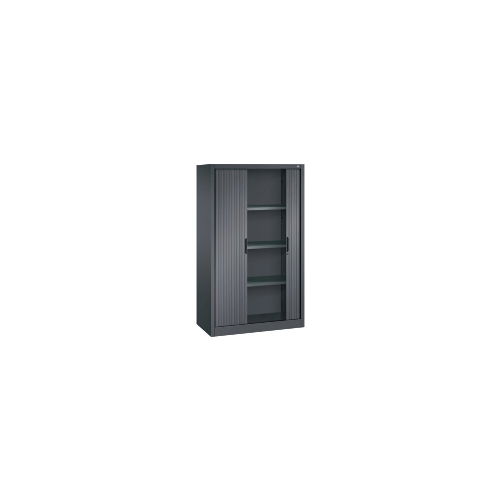 Leichtgängige Rollladentür mit Hakenriegelschloss, mittig anschlagend. Voller Zugriff auf den Innenraum. Niveauregulierung von innen einstellbar. Achtung: Anlieferungsmöglichkeit durch Sattelschlepper muss gegeben sein.