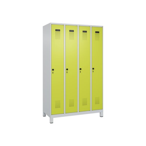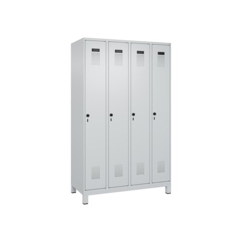Spind Evolo PLUS mit hochwertiger Einbrennbeschichtung für hohe UV- und Korrosionsbeständigkeit. Geschlossene und abgeschrägte Seitenprofile für leichte Innenreinigung und komfortable Entnahme von Kleidung. Türen mit Soft-Anschlag und geschlossenen Seitenprofilen für höchste Stabilität, mit reinigungsfreundlichem Belüftungslochbild oben und unten. Aufhängung in stabilen Drehbolzen. Mit schwarzen, selbstklebenden Kunststoff-Etikettenrahmen, inkl. Klarsichtkunststoff-Abdeckung und weißem Etikett zur individuellen Beschriftung. Achtung: Anlieferungsmöglichkeit durch Sattelschlepper muss gegeben sein.