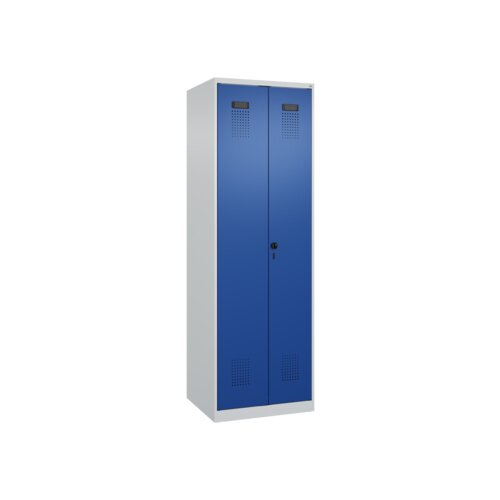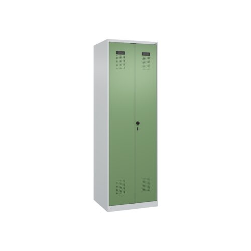 Schwarz-Weiß-Spind Evolo PLUS, 2 Abteile für 1 Person, zur getrennten Unterbringung von Privat- und Berufskleidung. Mit hochwertiger Einbrennbeschichtung für hohe UV- und Korrosionsbeständigkeit, geschlossene und abgeschrägte Seitenprofile für leichte Innenreinigung und komfortable Entnahme von Kleidung und Taschen. Geeignet für verdeckte Kabelführung. Mit hinteren Belüftungsöffnungen oben und unten. Innen je Abteil 1 Ablageboden. Darunter 1 stabile Garderobenstange aus Ovalprofil mit 3 verdrehsicheren Doppel-Schiebehaken inkl. Systemaufnahme. Türen zueinander schlagend für gemeinsamen Verschluss. Türöffnungsbegrenzer als Schutz vor Überdehnen der Tür. Mit Soft-Anschlag und geschlossenen Seitenprofilen für höchste Stabilität. Mit reinigungsfreundlichem Belüftungslochbild oben und unten. Aufhängung in stabilen Drehbolzen. Ergonomische Sicherheits-Drehriegel für Vorhangschloss mit Bügelstärke 6 bis 8 mm, inkl. Tür-Schutz. Kunststoff-Etikettenrahmen, schwarz, selbstklebend, inkl. Klarsichtkunststoff-Abdeckung und weißem Etikett zur individuellen Beschriftung. Achtung: Anlieferungsmöglichkeit durch Sattelschlepper muss gegeben sein.