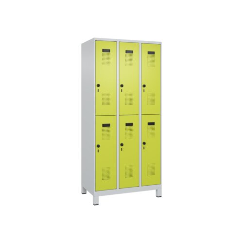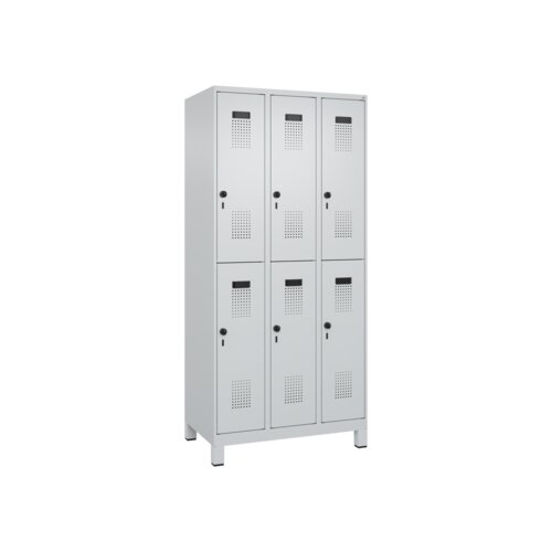 Doppelstöckiger Spind Evolo PLUS mit hochwertiger Einbrennbeschichtung für hohe UV- und Korrosionsbeständigkeit. Geschlossene und abgeschrägte Seitenprofile für leichte Innenreinigung und komfortable Entnahme von Kleidung und Taschen. Geeignet für verdeckte Kabelführung. Mit hinteren Belüftungsöffnungen oben und unten. Innen je Fach 1 stabile Garderobenstange aus Ovalprofil mit 3 verdrehsicheren Doppel-Schiebehaken inkl. Systemaufnahme. Türöffnungsbegrenzer als Schutz vor Überdehnen der Tür. Türen rechts angeschlagen, mit Soft-Anschlag und geschlossenen Seitenprofilen für höchste Stabilität. Aufhängung in stabilen Drehbolzen. Ergonomische Sicherheits-Drehriegel für Vorhangschlösser mit Bügelstärke 6 bis 8 mm. Inkl. Tür-Schutz. Kunststoff-Etikettenrahmen, schwarz, selbstklebend, inkl. Klarsichtkunststoff-Abdeckung und weißem Etikett zur individuellen Beschriftung. Achtung: Anlieferungsmöglichkeit durch Sattelschlepper muss gegeben sein.