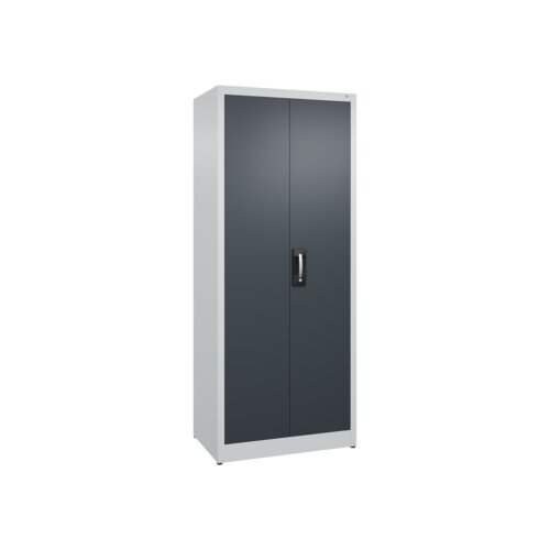 Flügeltürenschrank Acurado mit hochwertiger Einbrennbeschichtung für hohe UV-Beständigkeit. Mit Kunststoffgleitern als praktischer Schrank- und Fußbodenschutz. Hohe Flexibilität der Inneneinrichtung durch Höhenverstellbarkeit im 15 mm Raster. Türen verstärkt für hohe Stabilität. Türaufhängung oben und unten in Drehbolzen, zueinander schlagend für gemeinsamen Verschluss. 1 Ergonomischer Muldengriff Ergo-Lock 4.0 für optimale Bedienungssicherheit und Verschleißfestigkeit. 3-Riegel-Verschluss. Achtung: Anlieferungsmöglichkeit durch Sattelschlepper muss gegeben sein.