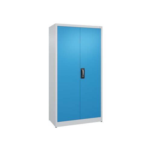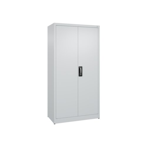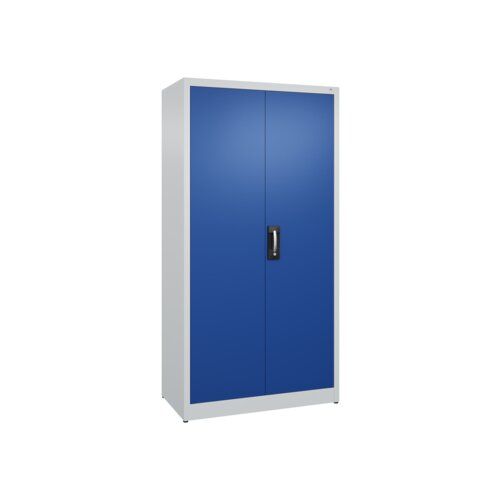 Flügeltürenschrank Acurado mit hochwertiger Einbrennbeschichtung für hohe UV-Beständigkeit. Mit Kunststoffgleitern als praktischer Schrank- und Fußbodenschutz. Hohe Flexibilität der Inneneinrichtung durch Höhenverstellbarkeit im 15 mm Raster. Türen verstärkt für hohe Stabilität. Türaufhängung oben und unten in Drehbolzen, zueinander schlagend für gemeinsamen Verschluss. 1 Ergonomischer Muldengriff Ergo-Lock 4.0 für optimale Bedienungssicherheit und Verschleißfestigkeit. 3-Riegel-Verschluss. Achtung: Anlieferungsmöglichkeit durch Sattelschlepper muss gegeben sein.