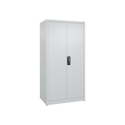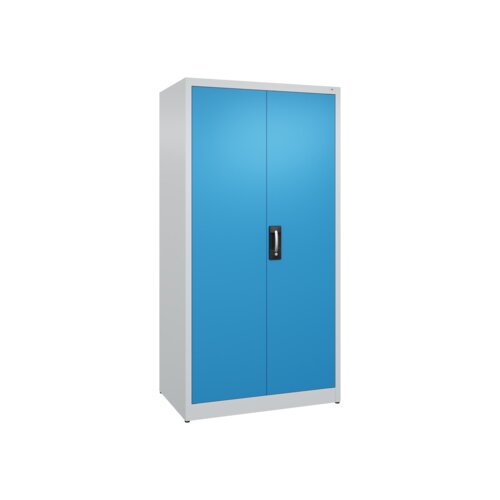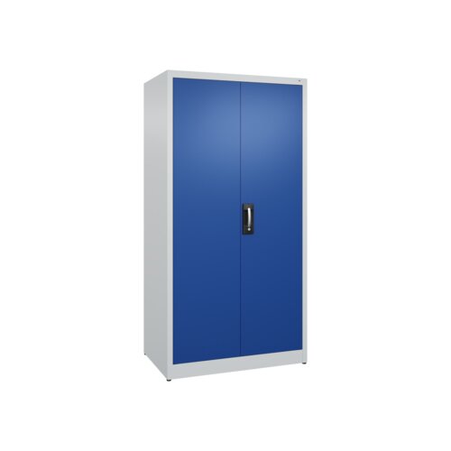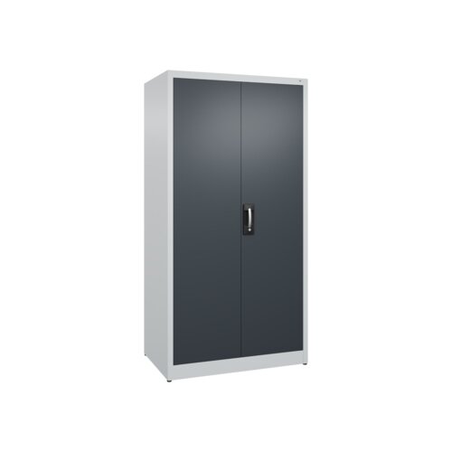 Flügeltürenschrank Acurado mit hochwertiger Einbrennbeschichtung für hohe UV-Beständigkeit. Mit Kunststoffgleitern als praktischer Schrank- und Fußbodenschutz. Hohe Flexibilität der Inneneinrichtung durch Höhenverstellbarkeit im 15 mm Raster. Türen verstärkt für hohe Stabilität. Türaufhängung oben und unten in Drehbolzen, zueinander schlagend für gemeinsamen Verschluss. 1 Ergonomischer Muldengriff Ergo-Lock 4.0 für optimale Bedienungssicherheit und Verschleißfestigkeit. 3-Riegel-Verschluss. Achtung: Anlieferungsmöglichkeit durch Sattelschlepper muss gegeben sein.