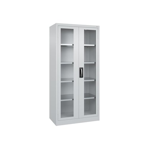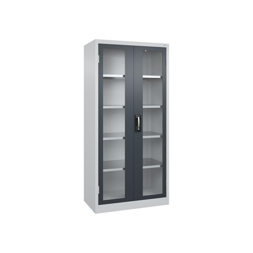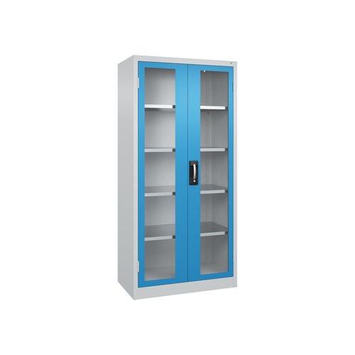 Werkzeugschrank Acurado. Korpus aus stabiler Stahlkonstruktion mit hochwertiger Einbrennbeschichtung für hohe UV-Beständigkeit. Mit Bodengleitern als praktischer Schrank- und Fußbodenschutz. Hohe Flexibilität der Inneneinrichtung durch Höhenverstellbarkeit im Raster. Türen mit Sichtfenster aus Acrylglas für direkten Einblick. Türen zueinander schlagend für gemeinsamen Verschluss. Geschlossene Seitenprofile und verdeckte Schließstangen für höchste Stabilität und Einbruchsicherheit, mit Softanschlag. Türaufhängung in außen liegenden Scharnieren mit großzügigem Öffnungswinkel. 3-Riegeliges Ergo-Lock Griffschloss für optimale Bedienungssicherheit und Verschleißfestigkeit mit patentiertem Mechanismus: Zum Schließen einfach zudrücken. Achtung: Anlieferungsmöglichkeit durch Sattelschlepper muss gegeben sein.
