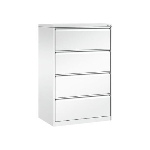 Schubladenschrank Acurado, als Hängeregistraturschrank. Korpus aus stabiler Stahlkonstruktion mit hochwertiger Einbrennbeschichtung für hohe UV-Beständigkeit. Mit integrierter durchgehender Griffleiste. 4 hochwertige Kunststoff-Etikettenrahmen. Achtung: Anlieferungsmöglichkeit durch Sattelschlepper muss gegeben sein.