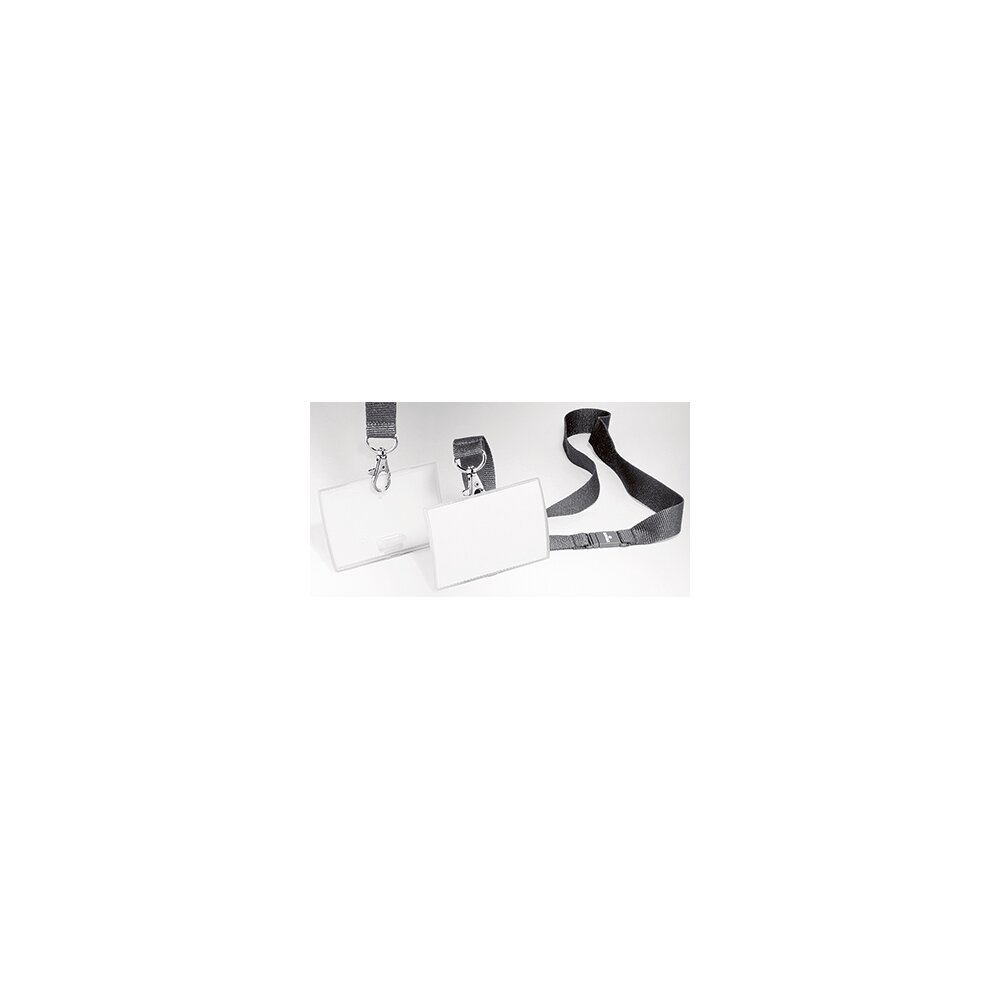 Aufklappbares Namensschild mit Textilband. Mit auswechselbarem blanko Einsteckschild. Ein flexibles Filmscharnier hält die Vorder- und Rückseite des einteiligen Namensschildes zusammen und ermöglicht so ein einfaches und schnelles Austauschen des Einsteckschildes. Kann wahlweise auch mit Kette, Clip oder mit Ausweiskartenhalter verwendet werden.