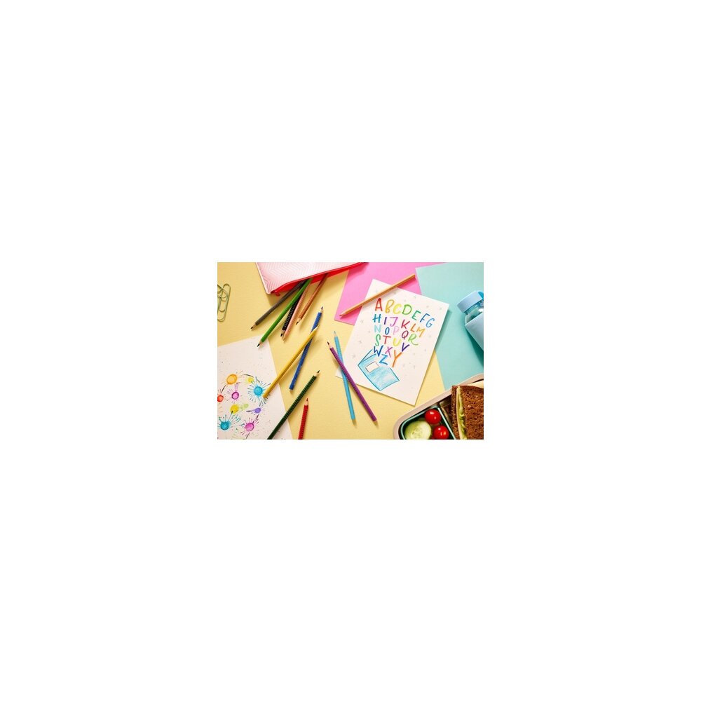 Durch die hohe Pigmentierung der Mine sind die Farben sehr leuchtend. Besonders schöne Ergebnisse entstehen durch die Wasservermalbarkeit der Pigmente: einfach Farbe auftragen, mit feuchtem Pinsel darübermalen und tolle Aquarelleffekte erzielen. Die patentierte Soft-Grip-Zone sorgt für sicheren Griff und ermüdungsfreies und lockeres Malen. Leichtes Spitzen mit jedem Qualitätsspitzer möglich. Bruchfeste Mine durch Spezialverleimung. Mit Namensfeld.