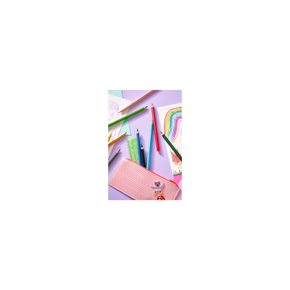 Die Buntstifte mit dem dicken dreieckigen Schaft sind optimal an die Ergonomie der Kinderhand angepasst. Die patentierte Soft-Grip-Zone sorgt für ermüdungsfreies und lockeres Malen. Besonders schöne Ergebnisse entstehen durch die Wasservermalbarkeit der Pigmente: einfach Farbe auftragen, mit feuchtem Pinsel darüber malen und tolle Aquarelleffekte erzielen.