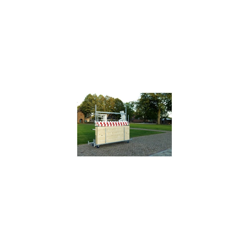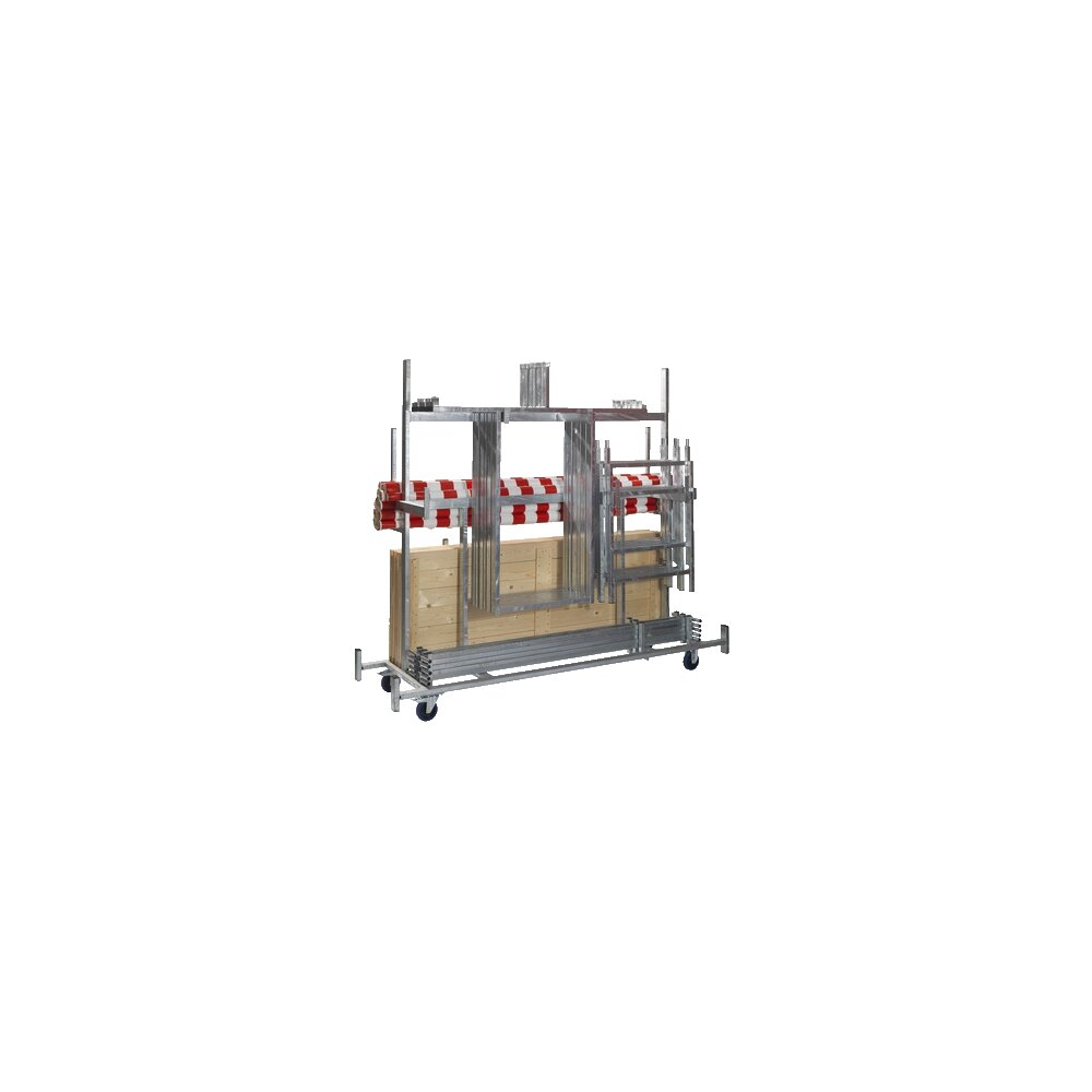 Dieser Transportwagen, der speziell für den Transport von Marktständen entwickelt wurde. Die Marktstände lassen sich leicht zerlegen und auf dem Wagen platzieren. Jedes Teil des Marktstands hat seinen eigenen Platz, sodass nichts beschädigt werden kann.