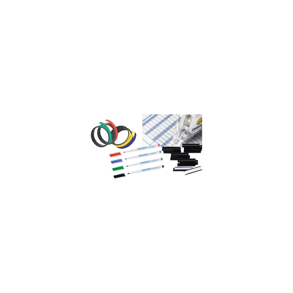 Ausführung des Inhalts (bzgl. der Hauptausstattungsteile)20 magnetische Namensschilder (10 x 50 mm) mit Karton- und Schutzstreifen, 2 x 2 m Magnetband 5 mm (rot, grün), 2 x 2 m Magnetband 10 mm (blau, gelb), transparentes Klebeband zur Kennzeichnung von Wochenende und Feiertage, 4 FineMarker farbig sortiert