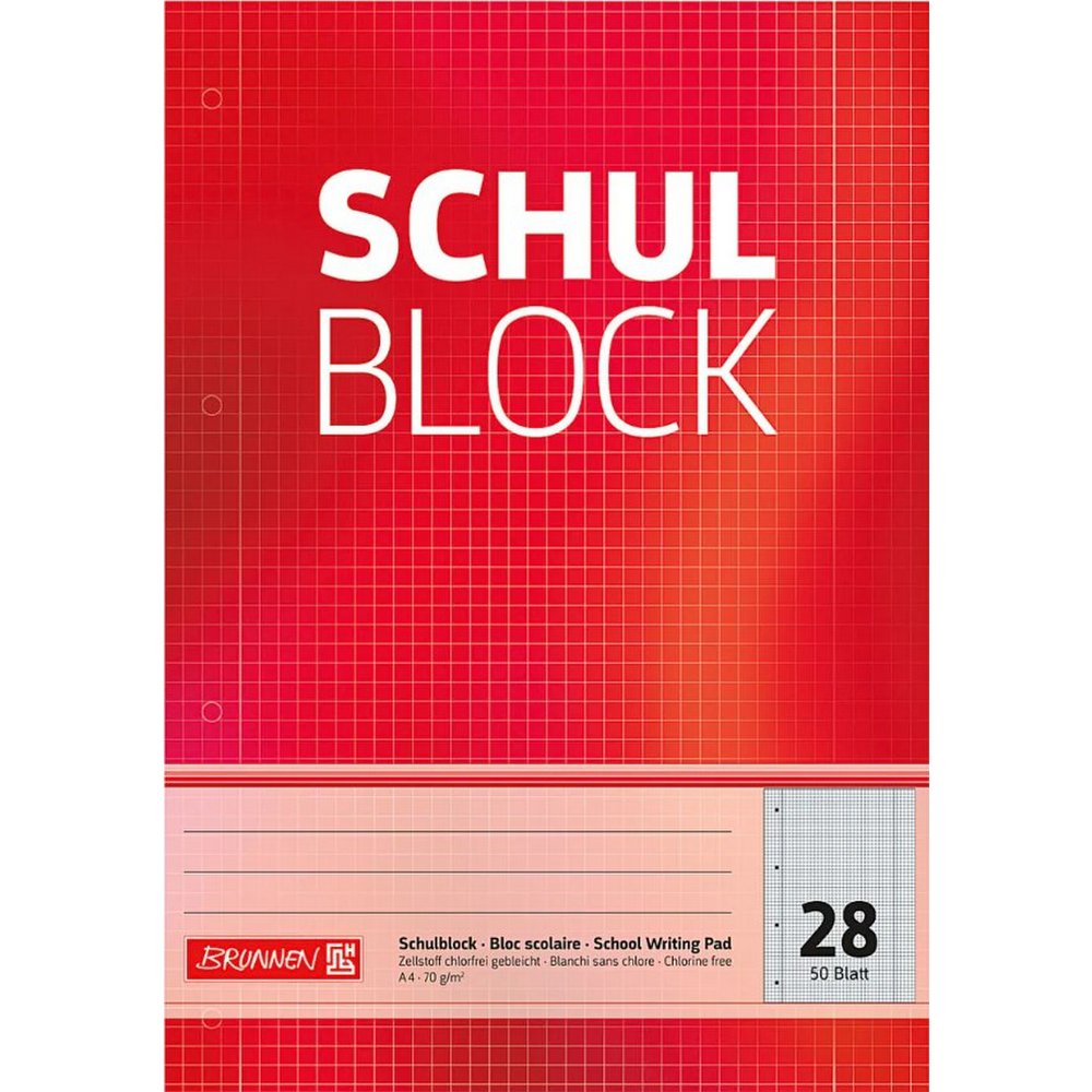 Schulblock A4, 50 Blatt, gelocht, Rand, kariert