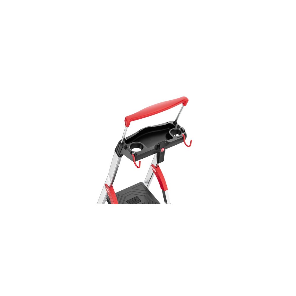 Plattformverriegelung für sicheres Ver- und Entriegeln. Ausziehbarer Sicherheits-Haltebügel zum Festhalten beim Arbeiten auf der Plattform. Verbesserte Bedienung des Haltebügels durch optimierte Mechanik. Multifunktions-Ablageschale zur Ablage von Werkzeugen, Farbdosen oder Kleinteilen. Eimerschlaufe mit Klick-Schnellverschluss zur sicheren Befestigung von Eimern, Staubsaugern oder Kabeltrommeln. Universalhaken als Halterung für Heckenscheren, Putzmittel oder Malerrollen. Stabhalter als Halterung für Besen oder Pflücker. Sichere, HighTech-vernietete Holm-Stufenverbindung. Rutschsicherer Steckfuß. Schwarze XXL-Alu-Stufen mit Anti-Rutsch-Riffelung und extra tiefer Standfläche. Verzinkte, schwarze Stahl-Plattform mit Anti-Rutsch-Riffelung. Für den privaten und gewerblichen Gebrauch geeignet.
