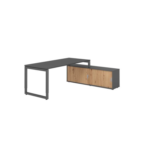 | Maße | Schreibtisch: 1.800 x 720-810 x 800 mm, Sideboard: 1.600 x 520 x 400 mm (B x H x T) |