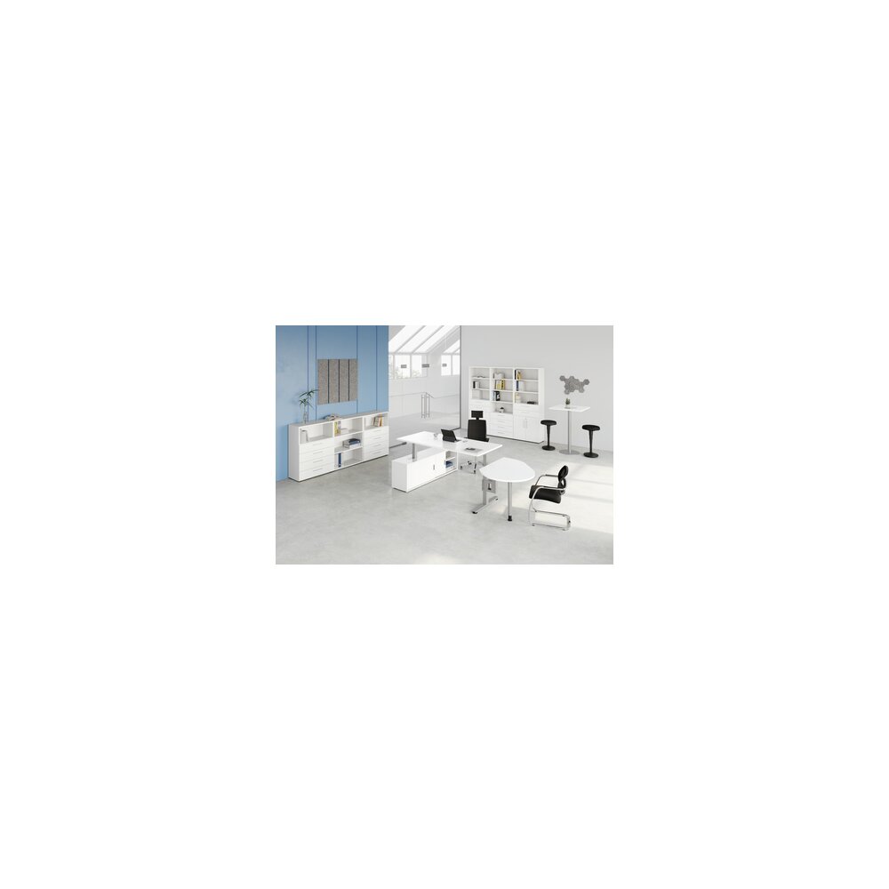 Hammerbacher Schreibtischkombination XMST19 Farbe der Tischplatte weiß Farbe des Korpus weiß Farbe des Gestells silber