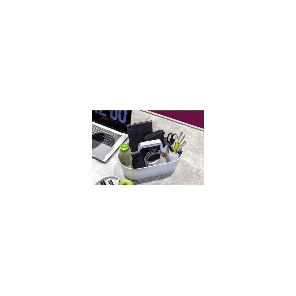 Die perfekte Organisationslösung mit praktischen Unterteilungen. Die tragbare Box ist besonders praktisch für den mobilen Einsatz. Organisation, Ablage und Transport von Arbeitsmaterial, persönlichen Gegenständen und kleinen Utensilien wird mit der Toolbox ganz einfach. Einmal gepackt kann alles zusammen an einem Ort abgestellt werden und ist mit einem Handgriff wieder im Einsatz. Das formschöne Design mit hochglänzender Oberfläche integriert sich harmonisch in jedes Wohn- und Arbeitsumfeld. Damit wird die Toolbox LOFT zu einem wahren Organisationswunder das sich vielfältig einsetzen lässt und zusätzlich beim Style punktet. In den unterschiedlich großen Fächern lassen sich Büromaterialien, Schminkutensilien und Handarbeitszeug ebenso gut organisieren wie Künstlerbedarf, Arzneimittel oder Zubehör für die Küche. Die herausnehmbare Ablageschale dient der Aufbewahrung kleiner Utensilien und macht diese auf dem Schreibtisch schnell zugänglich. Die Box steht auch im gefüllten Zustand sicher und stabil. Der ergonomisch geformte Griff sorgt für ein komfortables Tragen und liegt optimal in der Hand.