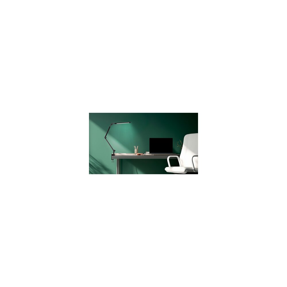 Die Tischleuchte Ray Flex bietet moderne LED-Technologie mit einer großen Ausladung und überzeugt durch eine besonders hohe Lichtqualität mit einem Farbwiedergabeindex von über 90. Gesteuert wird sie wahlweise bequem über die Funkfernbedienung oder direkt am Leuchtenarm. Die Farbtemperatur lässt sich flexibel dimmen und verändern, während die Memory-Funktion Ihre bevorzugten Einstellungen zuverlässig speichert. Ein automatischer Timer schaltet die Leuchte nach wahlweise 10 oder 45 Minuten aus. Dank des flexiblen Arms sowie der Klemme mit fünf Positionierungslöchern passt sich Ray Flex jedem Arbeitsplatz optimal an. Dieses Produkt enthält eine Lichtquelle der Energieeffizienzklasse F und diese kann nicht ausgetauscht werden.