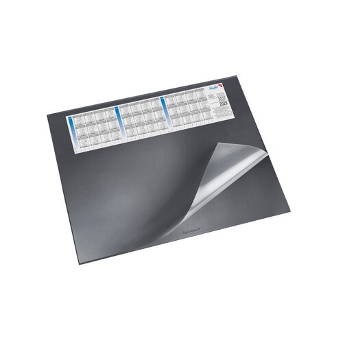 Die Läufer Durella Schreibunterlage mit einer blendfreien Vollsichtfolie über das ganze Format und einem auswechselbaren Kalender. Wichtige Informationen wie Notizen oder Telefonverzeichnisse liegen geschützt und jederzeit einsehbar auf dem Schreibtisch. Verstärkte, feinporige und dichte Kunstschaumbeschichtung bietet hohen Schreibkomfort und hohe Rutschfestigkeit. Der besondere 3-Schichten-Aufbau sichert absolute Planlage auch bei großen Temperaturschwankungen.