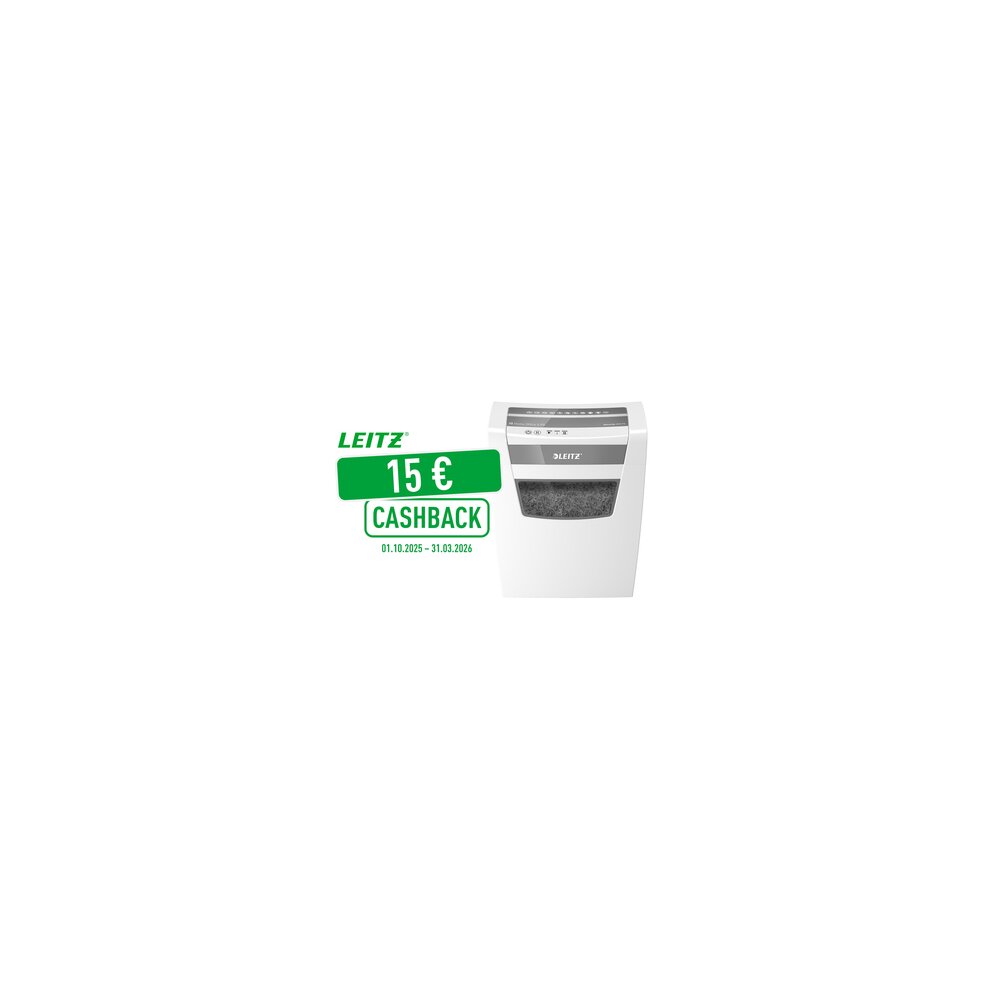 Ein eleganter, superleiser und schmaler Aktenvernichter für kleine Büros mit 1-2 Benutzern. Mit seiner äußerst kompakten Größe eignet er sich ideal für den Einsatz zu Hause und im Büro. Bringen Sie etwas Stil an Ihren Arbeitsplatz mit diesem staufreien, superleisen Aktenvernichter mit langer Laufzeit. Mit Touch-Control und Anti-Papierstau-Technologie sowie LED-Anzeige für Überhitzungsschutz. 1 zusätzliches Jahr Garantie bei Registrierung auf www.Leitz.com. Leitz startet im Aktionszeitraum vom 01. Oktober bis 31. März 2026 eine Cashback-Kampagne auf ausgewählte Aktenvernichter und Laminiergeräte. Gehen Sie auf https://www.leitz.com/de-de/promotions/cashback, um Ihren Beleg einzureichen und zu sparen!