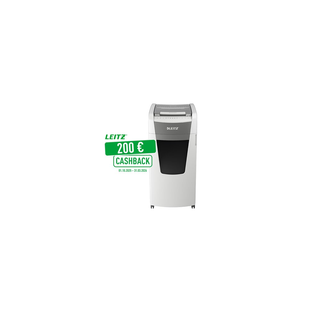 Vollautomatischer Aktenvernichter von Leitz mit einzigartiger Funktion für sauberes Entleeren des Abfallbehälters. So intelligent, dass er komplett selbständig arbeitet. Legen Sie einfach Ihren Papierstapel (inkl. Heft- und Büroklammern) ein, schließen Sie den Deckel und beginnen Sie Ihren Tag. Ideal für den häufigen Einsatz im Büro. Vertrauliche Sicherheit und hervorragende Leistung mit diesem papierstaufreien und leisen Autofeed-Aktenvernichter mit erstklassig langer Laufzeit. Mit integrierter Anti-Papierstau-Technologie - stoppt automatisch und führt das Papier zurück, wenn zu viel eingelegt worden ist. Einfach zu entleerender, herausziehbarer Abfallbehälter mit Infrarot-Sensoranzeige bei 80 % vollem Abfallbehälter, einzigartige Funktion für sauberes Entleeren des Abfallbehälters (Schneidewellen laufen nach jedem Schredder-Vorgang kurz rückwärts), um zu vermeiden, dass beim Herausziehen Papierschnipsel hinter den Behälter fallen. Kontinuierliche Laufzeit von 240 Minuten, sodass die maximale Blattanzahl der Papierkammer in einem Durchgang geschreddert werden kann. Der energiesparende ECO-Schlafmodus wird nach 3 Minuten Nichtbenutzung aktiviert. Einfach und intuitiv zu bedienen dank Touch-Control. Schreddern unterstützt die Einhaltung der DSGVO. 1 zusätzliches Jahr Garantie bei Registrierung auf www.Leitz.com. Leitz startet im Aktionszeitraum vom 01. Oktober bis 31. März 2026 eine Cashback-Kampagne auf ausgewählte Aktenvernichter und Laminiergeräte. Gehen Sie auf https://www.leitz.com/de-de/promotions/cashback, um Ihren Beleg einzureichen und zu sparen!