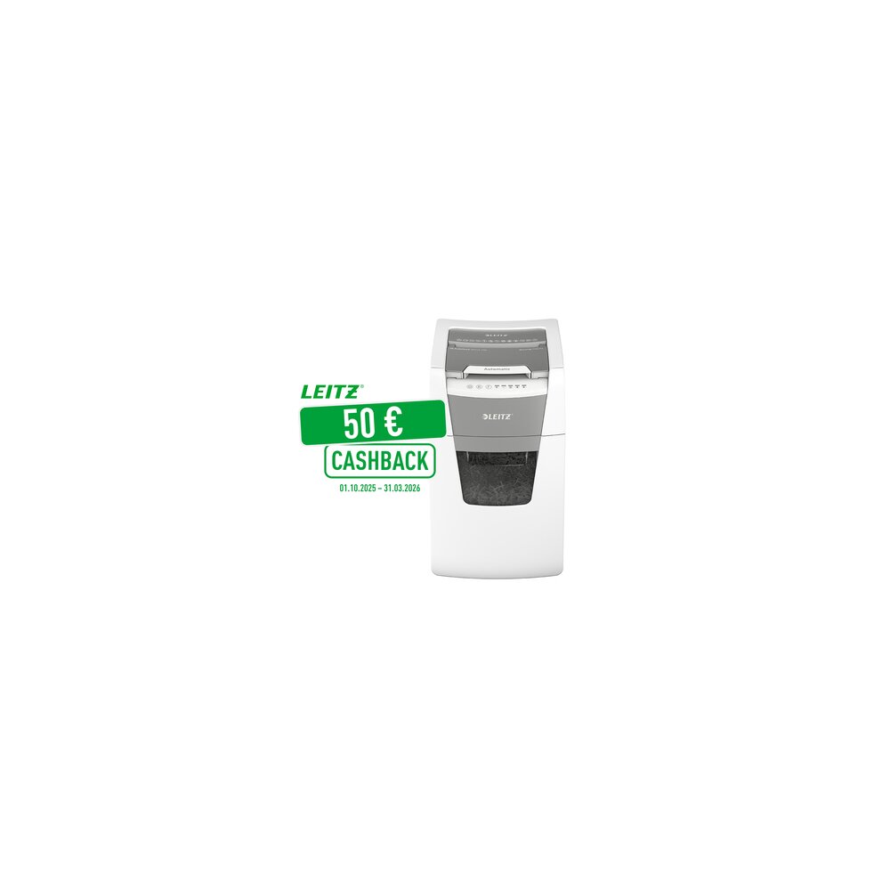 Vollautomatischer Aktenvernichter von Leitz mit einzigartiger Funktion für sauberes Entleeren des Abfallbehälters. So intelligent, dass er komplett selbständig arbeitet. Legen Sie einfach Ihren Papierstapel (inkl. Heft- und Büroklammern) ein, schließen Sie den Deckel und beginnen Sie Ihren Tag. Ideal für den täglichen Gebrauch in jeder Büroumgebung. Hohe Sicherheit und hervorragende Leistung mit diesem papierstaufreien, leisen und lang laufenden Autofeed-Aktenvernichter. Mit integrierter Anti-Papierstau-Technologie - stoppt automatisch und führt das Papier zurück, wenn zu viel eingelegt worden ist. Einfach zu entleerender, herausziehbarer Abfallbehälter mit Infrarot-Sensoranzeige bei 80 % vollem Abfallbehälter, einzigartige Funktion für sauberes Entleeren des Abfallbehälters (Schneidewellen laufen nach jedem Schredder-Vorgang kurz rückwärts), um zu vermeiden, dass beim Herausziehen Papierschnipsel hinter den Behälter fallen. Kontinuierliche Laufzeit von 30 Minuten, sodass die maximale Blattanzahl der Papierkammer in einem Durchgang geschreddert werden kann. Der energiesparende ECO-Schlafmodus wird nach 3 Minuten Nichtbenutzung aktiviert. Einfach und intuitiv zu bedienen dank Touch-Control. Schreddern unterstützt die Einhaltung der DSGVO. 1 zusätzliches Jahr Garantie bei Registrierung auf www.Leitz.com. Leitz startet im Aktionszeitraum vom 01. Oktober bis 31. März 2026 eine Cashback-Kampagne auf ausgewählte Aktenvernichter und Laminiergeräte. Gehen Sie auf https://www.leitz.com/de-de/promotions/cashback, um Ihren Beleg einzureichen und zu sparen!