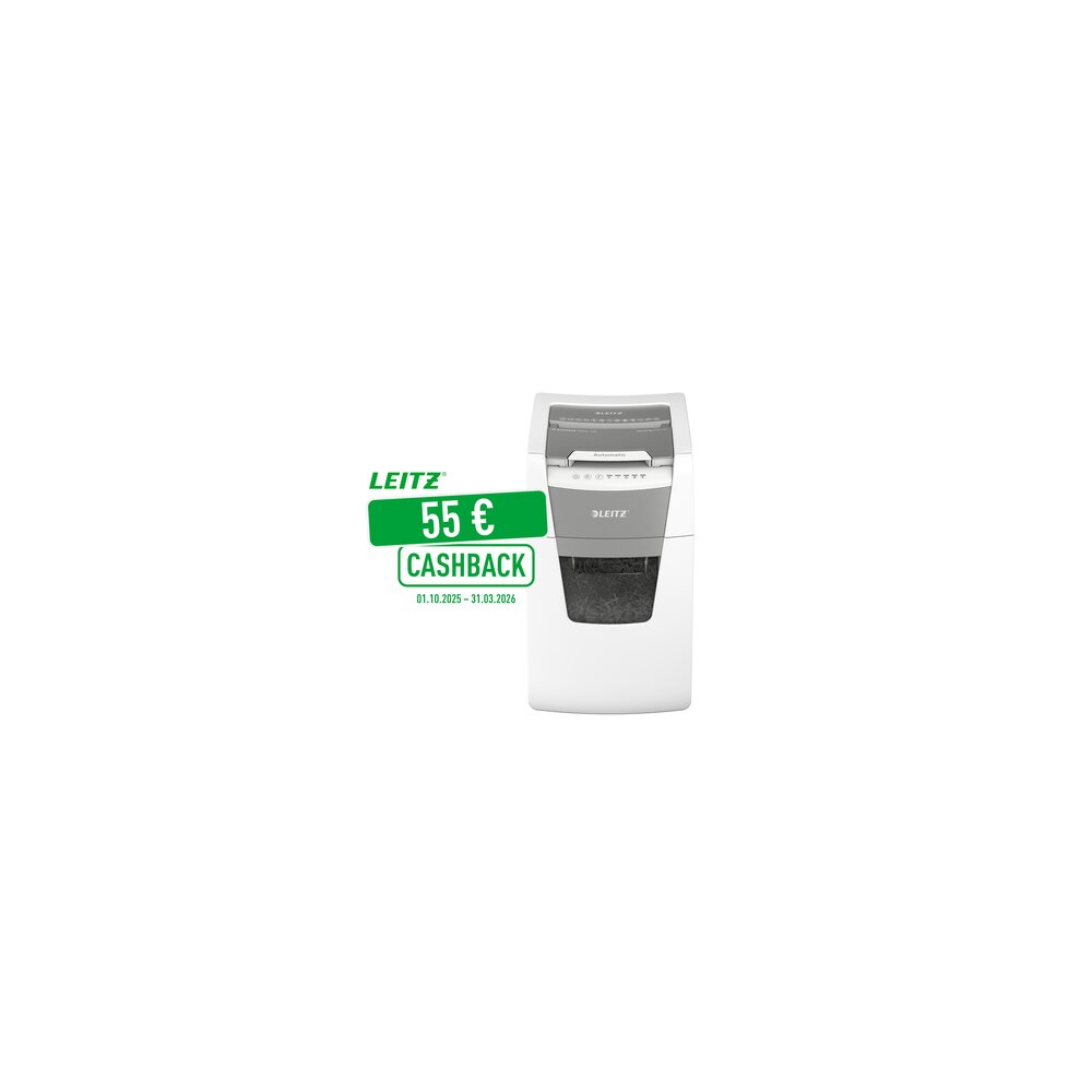 Vollautomatischer Aktenvernichter von Leitz mit einzigartiger Funktion für sauberes Entleeren des Abfallbehälters. So intelligent, dass er komplett selbständig arbeitet. Legen Sie einfach Ihren Papierstapel (inkl. Heft- und Büroklammern) ein, schließen Sie den Deckel und beginnen Sie Ihren Tag. Ideal für den Einsatz in Büros. Hohe Sicherheit und hervorragende Leistung mit diesem papierstaufreien, leisen und lang laufenden (30 Minuten) Autofeed-Aktenvernichter. Mit integrierter Anti-Papierstau-Technologie - stoppt automatisch und führt das Papier zurück, wenn zu viel eingelegt worden ist. Einfach zu entleerender, herausziehbarer Abfallbehälter mit Infrarot-Sensoranzeige bei 80 % vollem Abfallbehälter, einzigartige Funktion für sauberes Entleeren des Abfallbehälters (Schneidewellen laufen nach jedem Schredder-Vorgang kurz rückwärts), um zu vermeiden, dass beim Herausziehen Papierschnipsel hinter den Behälter fallen. Kontinuierliche Laufzeit von 30 Minuten, sodass die maximale Blattanzahl der Papierkammer in einem Durchgang geschreddert werden kann. Der energiesparende ECO-Schlafmodus wird nach 3 Minuten Nichtbenutzung aktiviert. Einfach und intuitiv zu bedienen dank Touch-Control. Schreddern unterstützt die Einhaltung der DSGVO. 1 zusätzliches Jahr Garantie bei Registrierung auf www.Leitz.com. Leitz startet im Aktionszeitraum vom 01. Oktober bis 31. März 2026 eine Cashback-Kampagne auf ausgewählte Aktenvernichter und Laminiergeräte. Gehen Sie auf https://www.leitz.com/de-de/promotions/cashback, um Ihren Beleg einzureichen und zu sparen!