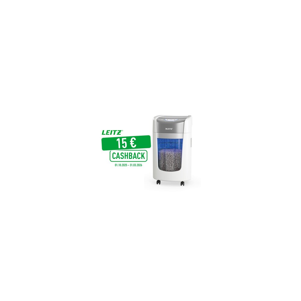 Elektrischer Aktenvernichter mit manuellem Papiereinzug für das Home-Office mit 1-2 Benutzern. Mit revolutionärer Rotationstechnik des Abfallbehälters für 45 % mehr Blattkapazität (+ 90 A4-Blätter). Die einzigartige rotierende Behältertechnologie maximiert das Fassungsvermögen des Behälters und erleichtert das saubere Entleeren. Der sich drehende Auffangbehälter sorgt für eine flache und gleichmäßige Verteilung des Papiers und verhindert, dass sich die Papierschnipsel zu einer Spitze auftürmen. Ein intuitives LED-Display mit Anzeigen für vollen Behälter, offene Tür, Überhitzung und Überlastung. Mit Touch-Control und Anti-Papierstau-Technologie für kontinuierliches Schreddern. Ultraleiser Betrieb. Einfach zu leerender, herausziehbarer, runder Abfallbehälter mit Sichtfenster. 1 zusätzliches Jahr Garantie bei Registrierung auf www.Leitz.com. Leitz startet im Aktionszeitraum vom 01. Oktober bis 31. März 2026 eine Cashback-Kampagne auf ausgewählte Aktenvernichter und Laminiergeräte. Gehen Sie auf https://www.leitz.com/de-de/promotions/cashback, um Ihren Beleg einzureichen und zu sparen!