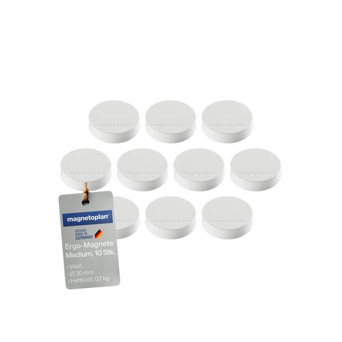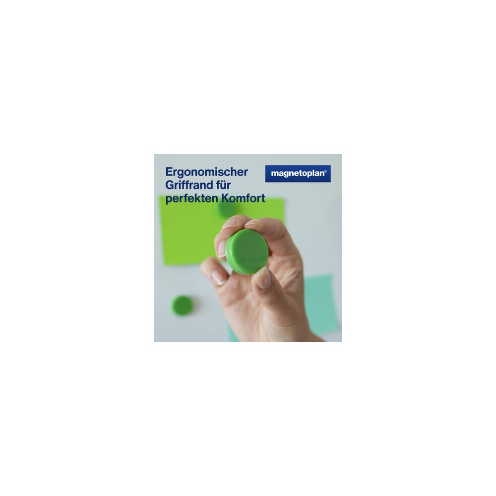 Die Ergo-Magnete mit ergonomischem Griffrand bieten perfekten Komfort in der Handhabung und lassen sich leicht von der Tafeloberfläche wieder abnehmen. Die spezialbeschichtete Magnet-Unterseite verhindert ein Zerkratzen der Oberfläche. Durch die Vollkern Ferrit-Ausstattung verfügen die Ergo-Magnete über für eine besonders hohe Haftkraft. Ein hochwertiger Kleber garantiert den festen Verbund mit den farbigen Kunststoffkappen.