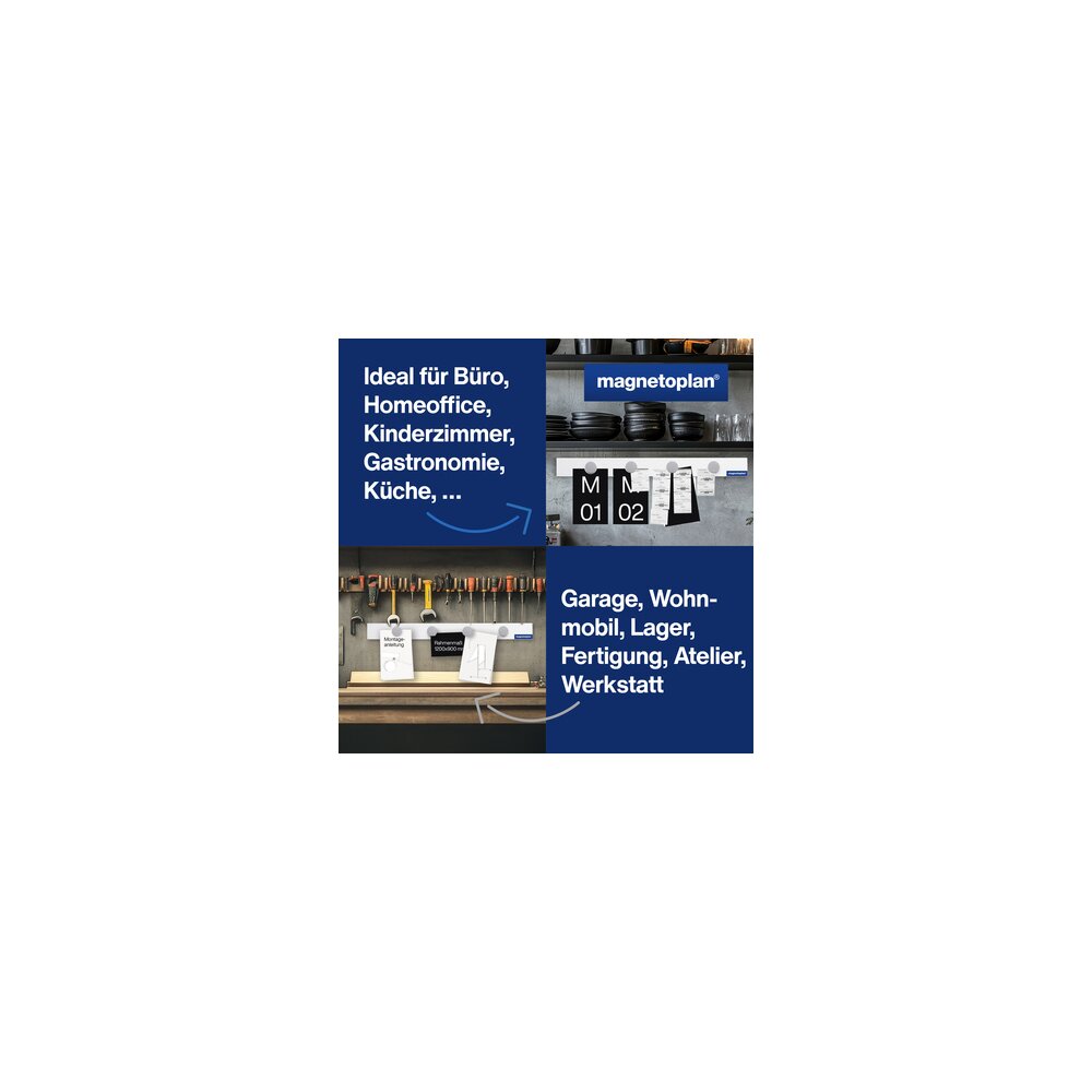 Die praktische Magnetleiste für Büro, Werkstatt und Privatbereich. Zur schnellen, magnethaftenden Befestigung.