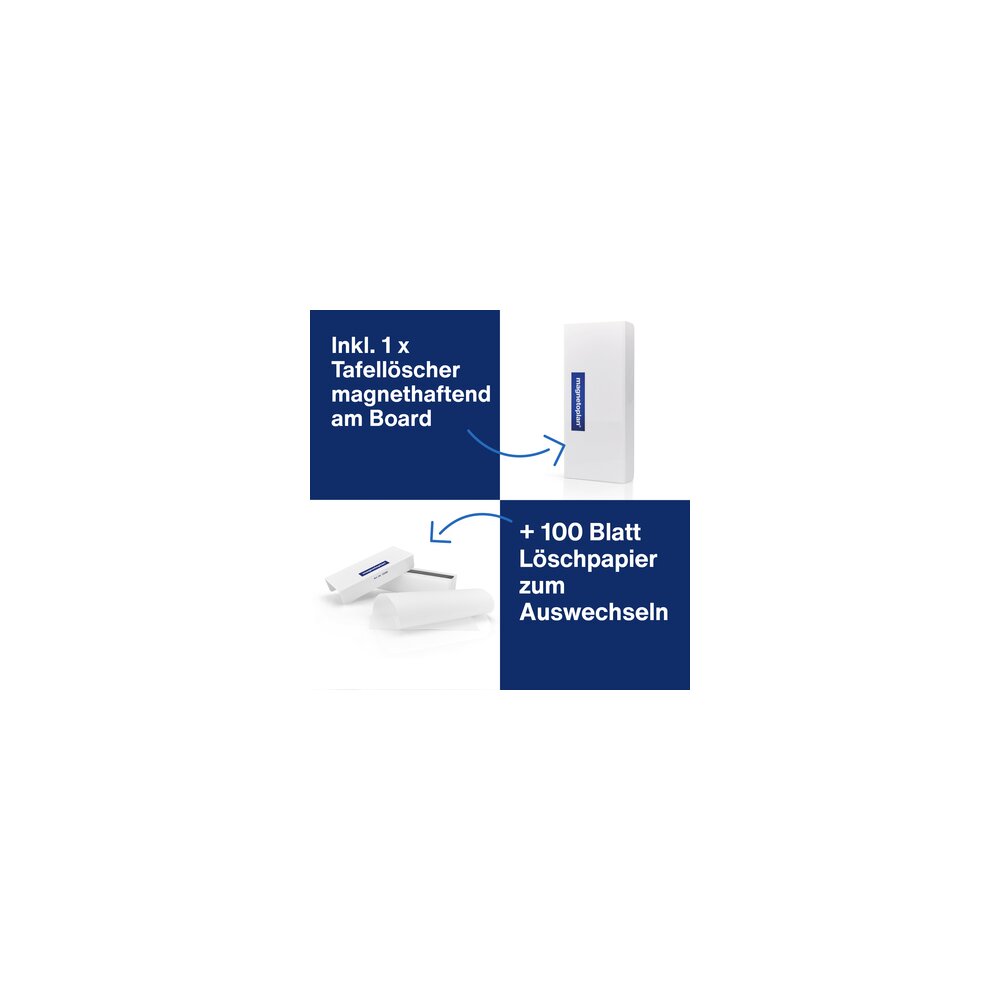 Ausführung der Lieferzusammenstellunginkl. 1 Tafellöscher, magnethaftend, 100 Bl. Löschpapier, 1 Tafelreiniger 250 ml