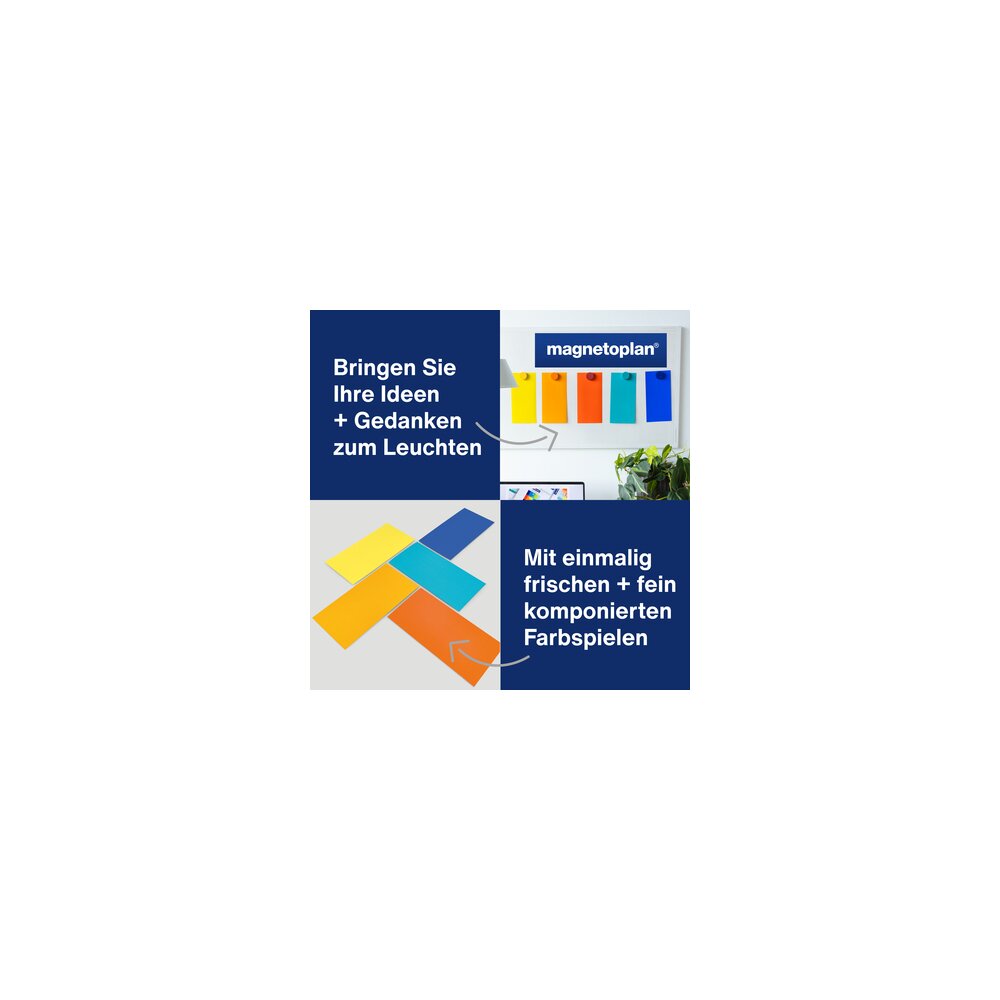 Bringen Sie Ihre Ideen + Gedanken zum Leuchten mit einmalig frischen und fein komponierten Farbspielen. Die farbstarken magnetoplan Kommunikationskarten verleihen Ihren Ideen und Gedanken einen einzigartigen, erfrischenden und unvergesslichen Rahmen, der das Wesentliche stets im Blick behält. Färbung aus 100 % pflanzlichen Farben.