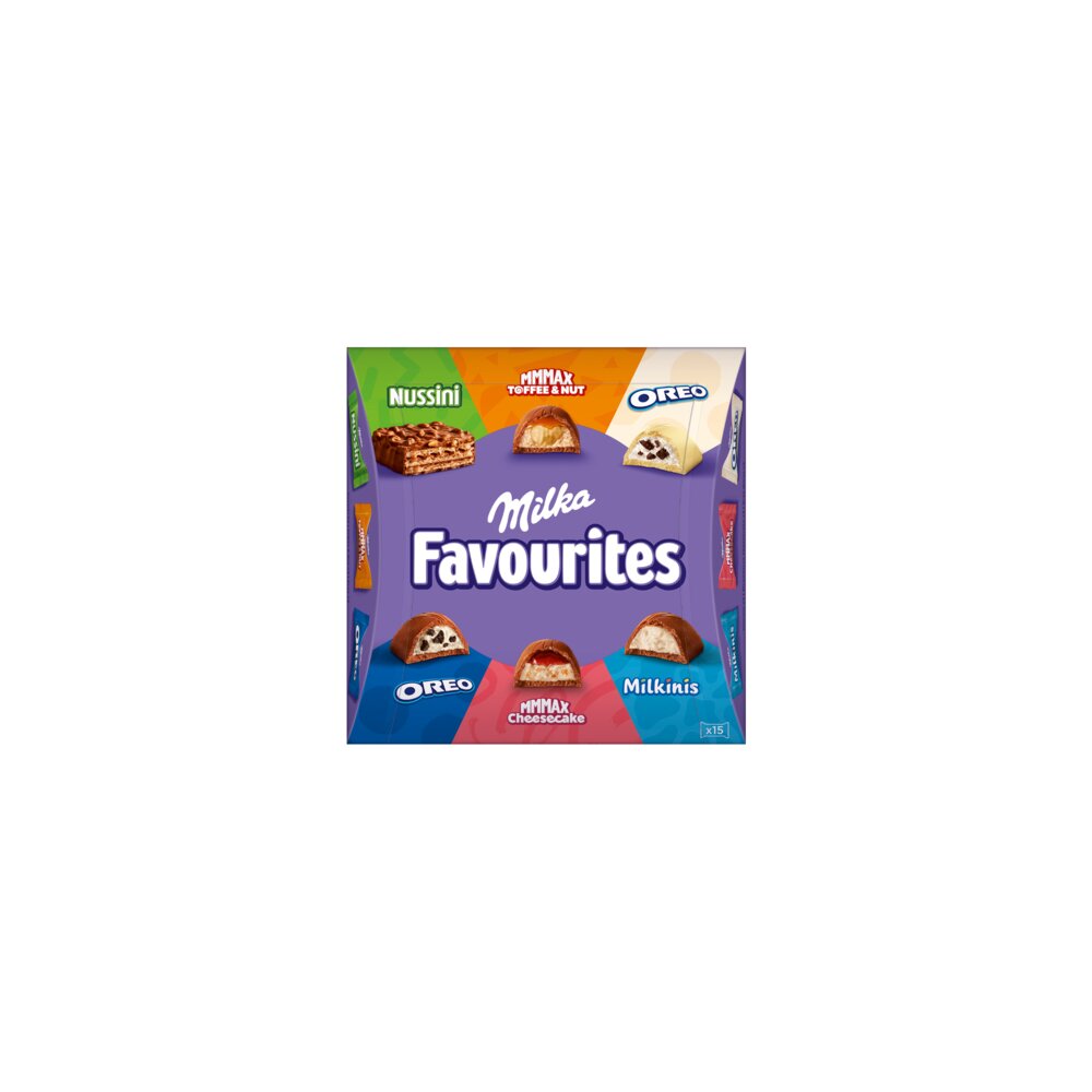 Die schokoladigen Lieblinge als süße Kollektion! Bei den leckeren Milka Favourites ist für jede Naschkatze etwas dabei. Freuen Sie sich auf eine bunte Auswahl aus den besten Milka-Kreationen, die in schmackhafte Mini-Pralinen verwandelt wurden. Cremig gefüllte Schokolade und krosse Waffeln bieten dabei eine leckere Abwechslung.