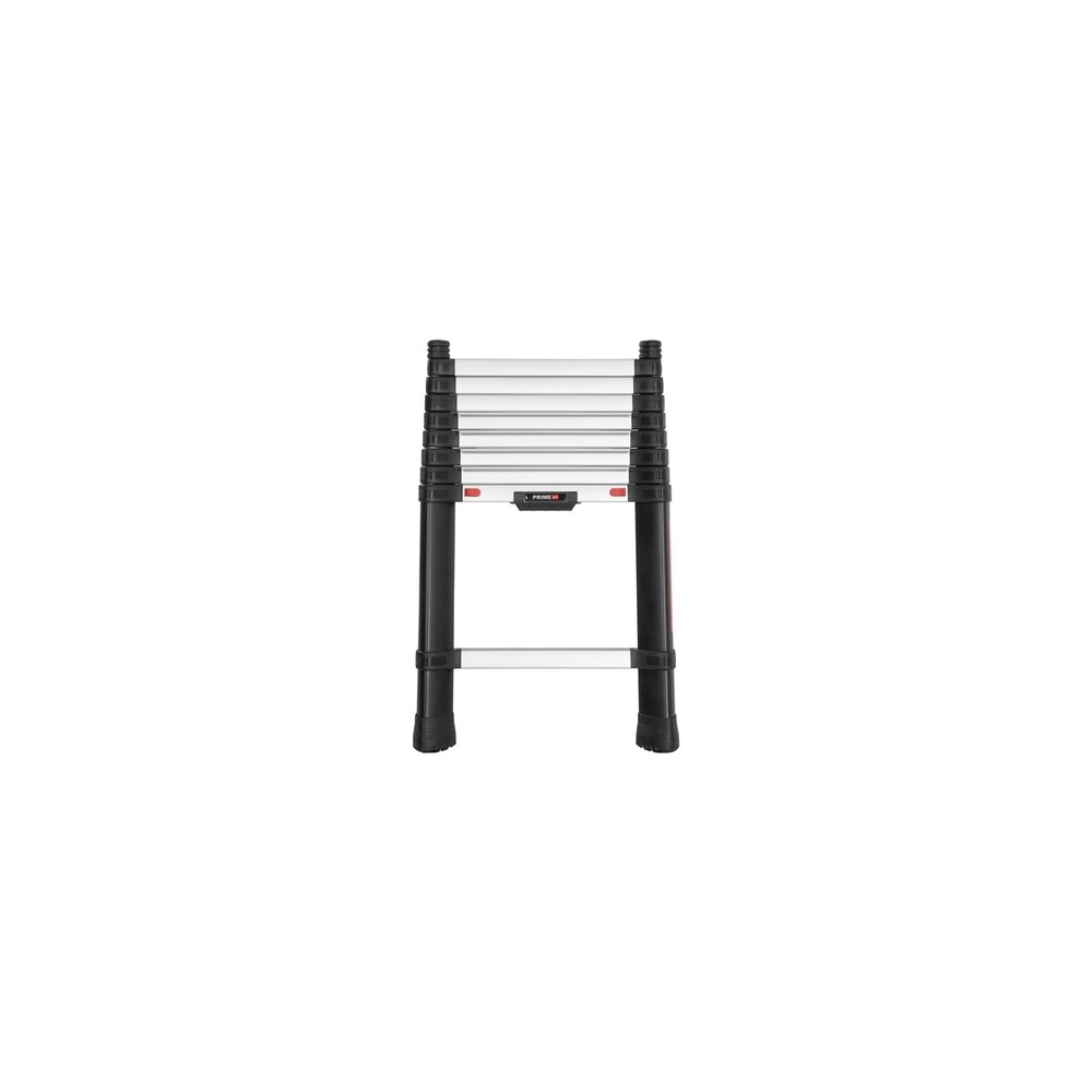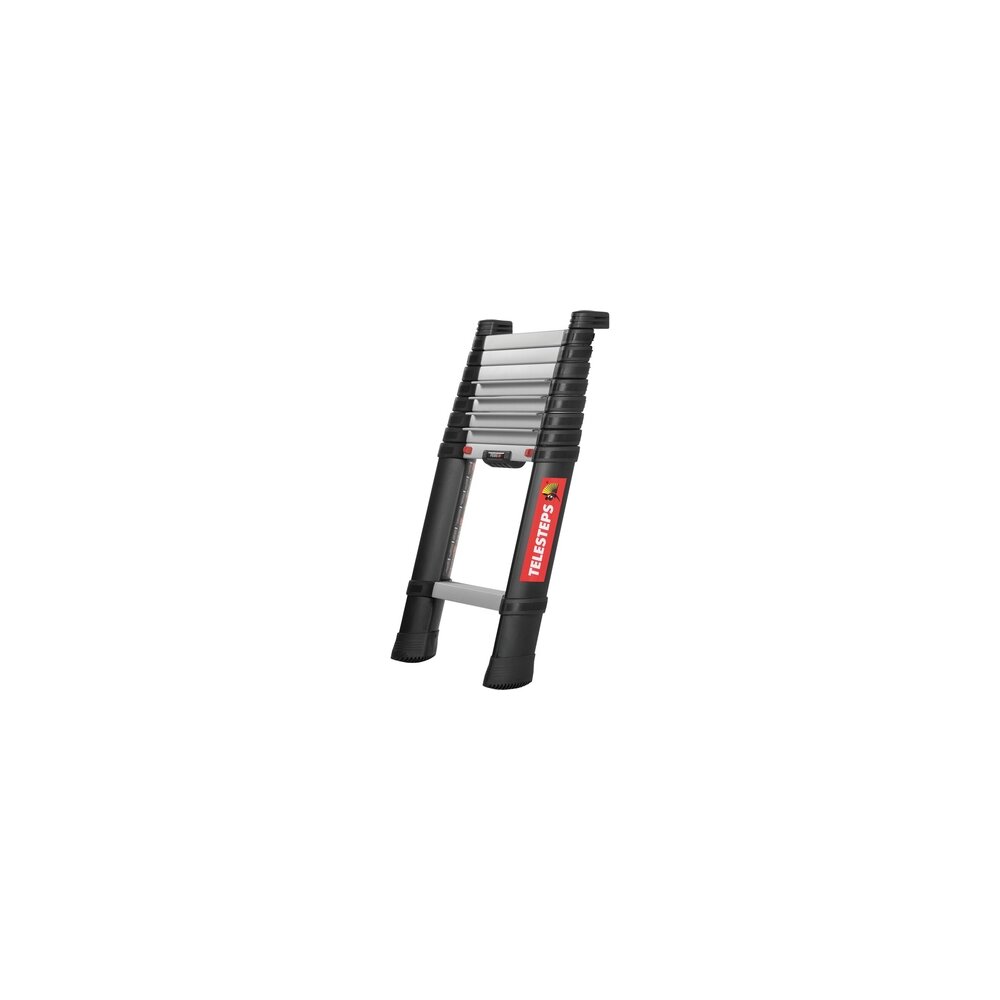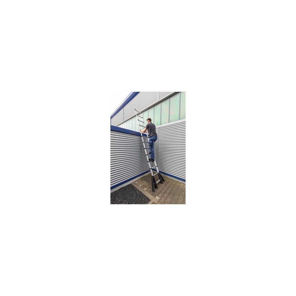 Original Telesteps-Teleskopleiter. Stabile Dreieckrohr-Holme, abriebfest eloxiert. 80 mm tiefe, geriffelte Stufen und drei Antrittssprossen (50 mm). Hochfeste Stufen-/Holmverbindung. Bequeme Höhenverstellung durch intuitive Teleskopfunktion.