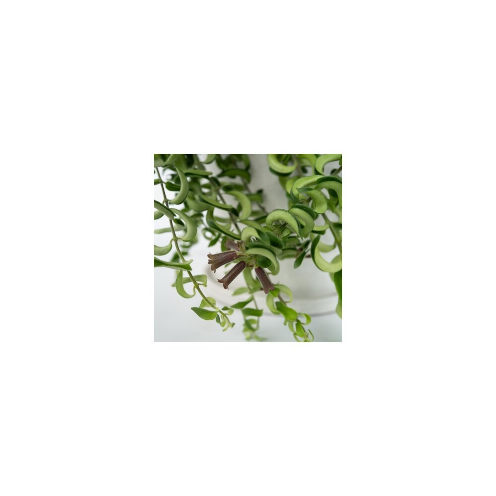 Der Aeschynanthus Twister ist eine besondere Pflanze mit langen grünen Ranken, die nach unten hängen. Die Blätter der Pflanze sind gekräuselt, daher der Spitzname "Twister". Ursprünglich stammt der Aeschynanthus aus Malaysia und anderen Gebieten in Südostasien. Hier bedeutet Aeschynanthus "Blumen, die sich schämen". Es ist nicht klar, woher dieser Name kommt, es könnte daran liegen, dass die Blumen lange Zeit verborgen bleiben oder weil die Blumen eine rote Farbe haben. Die Blüten der Pflanze sind röhrenförmig und rötlich-orange, wodurch sie einem Lippenstift sehr ähnlich sehen. Der Spitzname des Aeschynanthus Twister lautet daher "Die Lippenstiftpflanze". Der Aeschynanthus Twister ist eine Pflanze tropischen Ursprungs. Aus diesem Grund bevorzugt es viel Licht, aber keine volle Sonne. Darüber hinaus reagiert die Lippenstiftpflanze sehr empfindlich auf zu viel Wasser. Daher ist es am besten, die Pflanze nicht zu stark zu gießen, sondern die Blumenerde zwischen den Wassergaben austrocknen zu lassen. Im Winter hält die Pflanze eine Art Winterschlaf, sodass sie nicht blüht, aber im Frühling blüht sie sehr leicht! Gut zu wissen ist auch, dass der Aeschynanthus Twister nicht giftig ist. Im Regenwald kann er bis zu 3 Meter hoch werden, im Wohnzimmer kommt er aber nicht so weit.