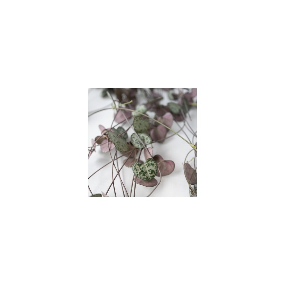 Der lateinische Name der chinesischen Laternenpflanze ist Ceropegia Woodii. Sein Spitzname ist jedoch String of Hearts, was Sie sofort verstehen werden, wenn Sie die Pflanzen sehen. Ihre Blätter sehen aus wie kleine Herzen an den Strängen der Pflanze. Doch woher kommt der Name Chinesische Laternenpflanze? Diese besondere Hängepflanze kann blühen, und sobald sie blüht, erscheinen kleine Blüten, die wie chinesische Laternen aussehen. Eine ganz besondere, aber vor allem sehr schöne Hängepflanze. Die Ceropegia Woodii ist extrem pflegeleicht. Er gehört zur Familie der Sukkulenten. Das bedeutet, dass es spezielle Wurzeln hat, um Wasser zu speichern. Dadurch müssen Sie es kaum gießen. Im Frühling und Sommer können Sie ihm jede Woche einen kleinen Spritzer geben, im Winter reicht ein Spritzer alle zwei bis drei Wochen. Gießen Sie es erst, wenn die Erde vollständig ausgetrocknet ist. Der Standort der chinesischen Laternenpflanze ist nicht kompliziert, sie fühlt sich am besten an einem Ort mit viel Tageslicht. Ceropegia woodii überlebt aber auch im Dunkeln gut. Darüber hinaus ist die Ceropegia ungiftig. Schließlich kann die kleine Pflanze Stränge von über einem Meter Länge wachsen lassen!