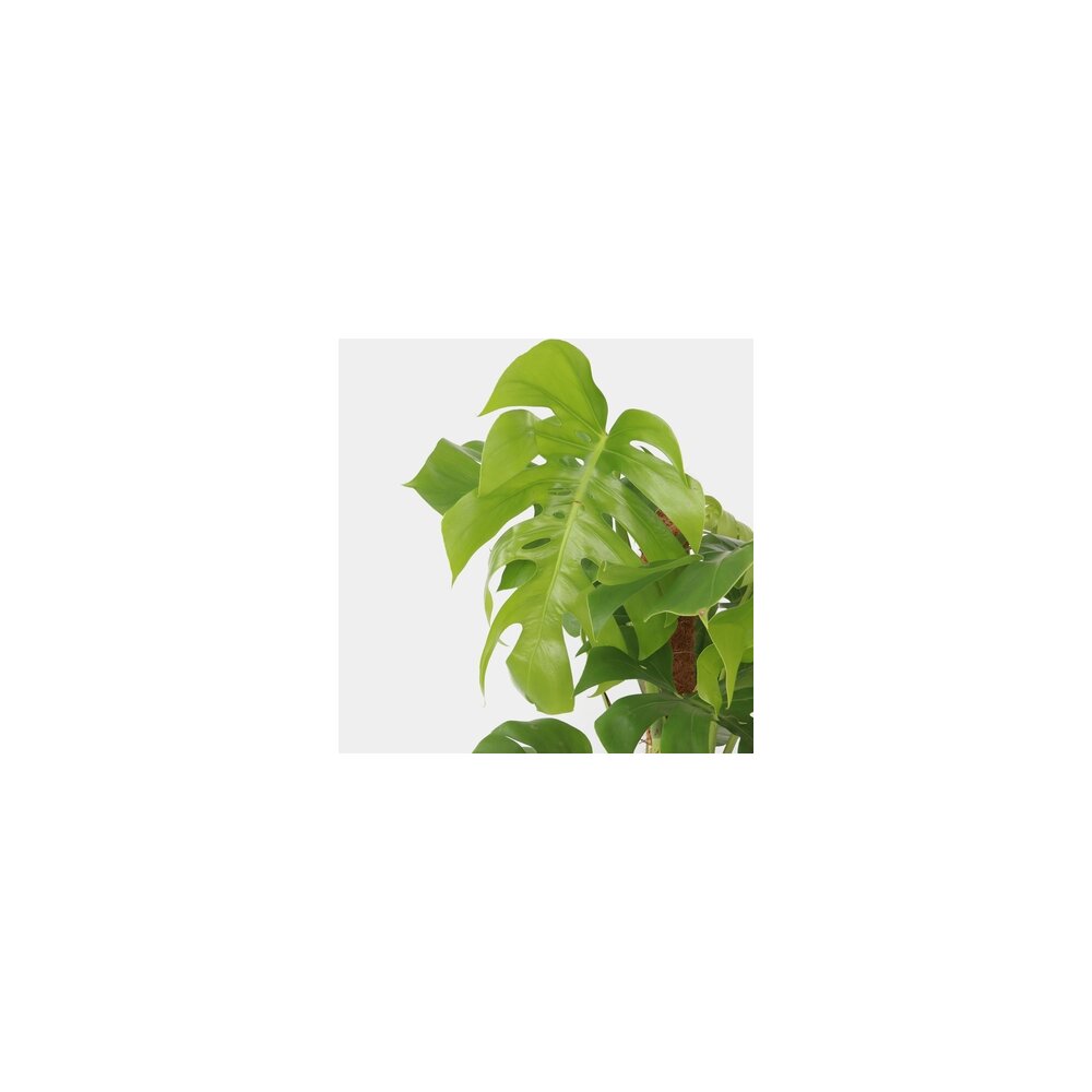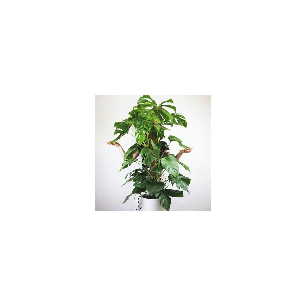 Die Monstera Deliciosa wird auch Schweizer Käsepflanze genannt. Ihren Namen verdankt die Pflanze der besonderen Blattform. Wie der Name schon sagt, sind die Blätter voller Löcher. Diese Löcher sehen nicht nur schön aus, sondern sind in der Natur auch sehr nützlich. Sie verhindern, dass die Pflanze bei einem Sturm umgeweht wird, da der größte Teil des Windes und des Regens durch die Löcher geht. Ursprünglich stammt die Monstera aus Süd- und Mittelamerika, wo sie oft an Baumstämmen in die Höhe wächst oder sich am Boden entlangschlängelt. Diese Pflanze wird daher mit einem Moosstab geliefert, auf dem sie wachsen kann. Ursprünglich ist die Monstera eine tropische Pflanze. Deshalb möchte die Pflanze immer eine leicht feuchte Blumenerde haben. Achten Sie nur darauf, dass sich am Boden des Topfes keine Wasserschicht bildet. Versuchen Sie, die Blätter der Monstera regelmäßig einzusprühen, damit die Blattränder nicht austrocknen. Die Monstera kann sehr schnell wachsen und lange Zweige entwickeln, deren Blätter mehrere Meter lang sein können. Es ist auch gut zu wissen, dass die Monstera giftig ist. Platzieren Sie die Pflanze daher an einem Ort, an dem Kinder und Haustiere sie nicht erreichen können. Achten Sie jedoch darauf, dass die Pflanze im Halbschatten oder an einem anderen hellen Standort steht. Vermeiden Sie direkte Sonneneinstrahlung, da die Monstera eine echte Schattenpflanze ist. So hält man eine glückliche Monstera. Und es gibt Ihnen viel zurück! Das liegt daran, dass die Monstera luftreinigend ist, das heißt, sie produziert zusätzlichen Sauerstoff und filtert Schadstoffe.
