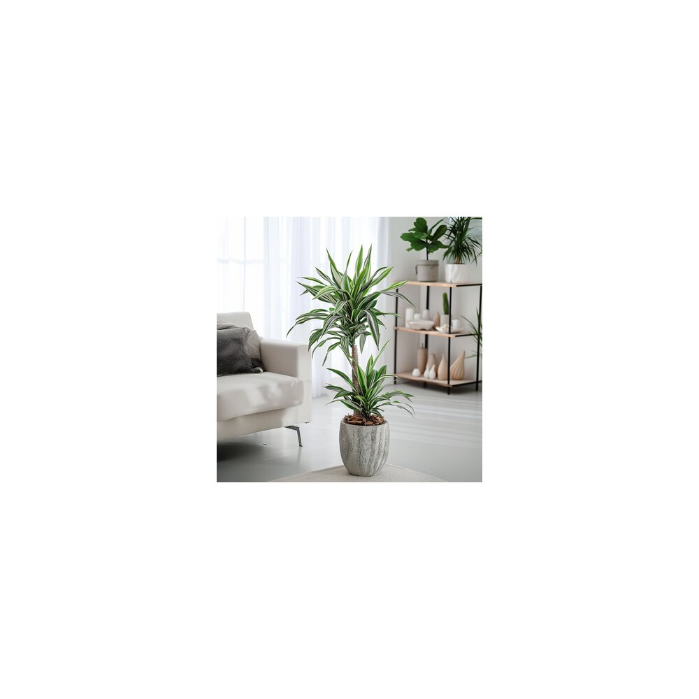 Tropischer Look, pflegeleicht und luftreinigend. Die Dracaena Janet Craig hat alles! Diese erstaunliche Zimmerpflanze stammt aus Afrika, Mittelamerika und Asien. Das Klima in diesen Gegenden ist für Pflanzen ziemlich rau, aber das bedeutet, dass die Dracaena einiges aushalten kann und daher pflegeleicht ist. Diese Pflanze ist wegen des roten Harzes, das aus der Pflanze fließt, wenn ein Schnitt in den Stängel oder die Blätter gemacht wird, auch als Drachenblutbaum bekannt. Diese Zimmerpflanze filtert verschmutzte Partikel aus der Luft und schafft eine gesündere Umgebung. Die Dracaena erfordert wenig Pflege. Es ist die ideale Pflanze für Ihr Zuhause oder Büro. Am besten gedeiht die Dracaena an einem Standort im (Halb-)Schatten. Außerdem benötigt diese Pflanze nicht viel Wasser. Gießen Sie die Pflanze nur, wenn sich die Erde trocken anfühlt. Zu viel Wasser kann Wurzelfäule verursachen. Dies erkennt man an den Blättern: Hier bilden sich braune Flecken mit gelben Rändern. In diesem Fall wird empfohlen, weniger Wasser zu geben und die braunen Blätter zu entfernen. Wenn die Pflanze über einen längeren Zeitraum nass ist, können die Wurzeln verfaulen und es ist dann schwierig, die Pflanze zu retten. Im Winter benötigt die Pflanze noch weniger Wasser als im Sommer. Im Zweifelsfall lieber etwas zu wenig als zu viel gießen. Ein Rückschnitt ist nicht notwendig, kann aber im Herbst durchgeführt werden, um die Pflanze kompakt zu halten.