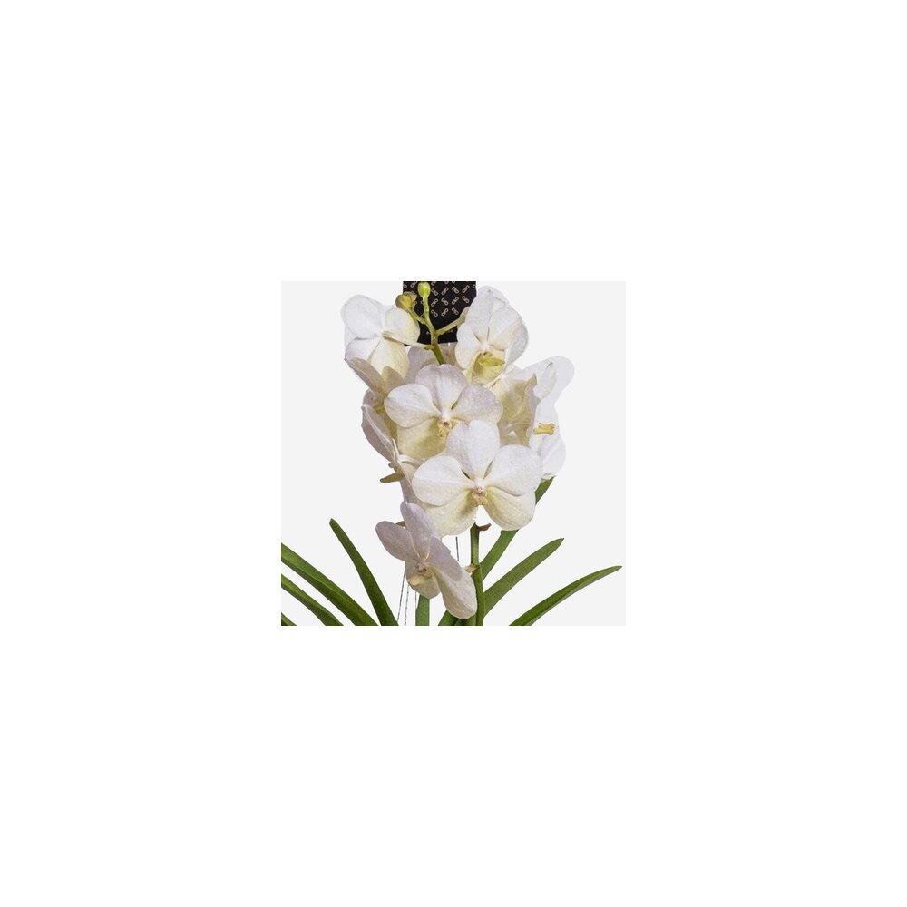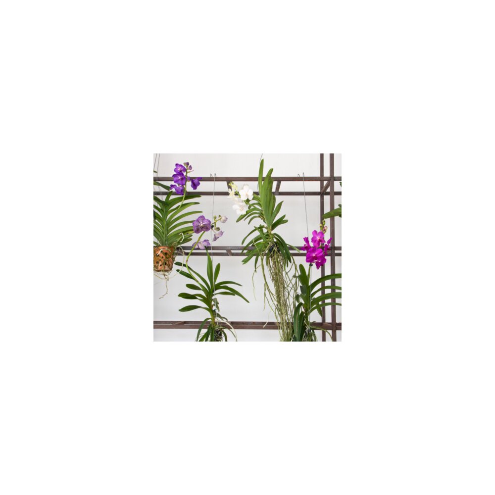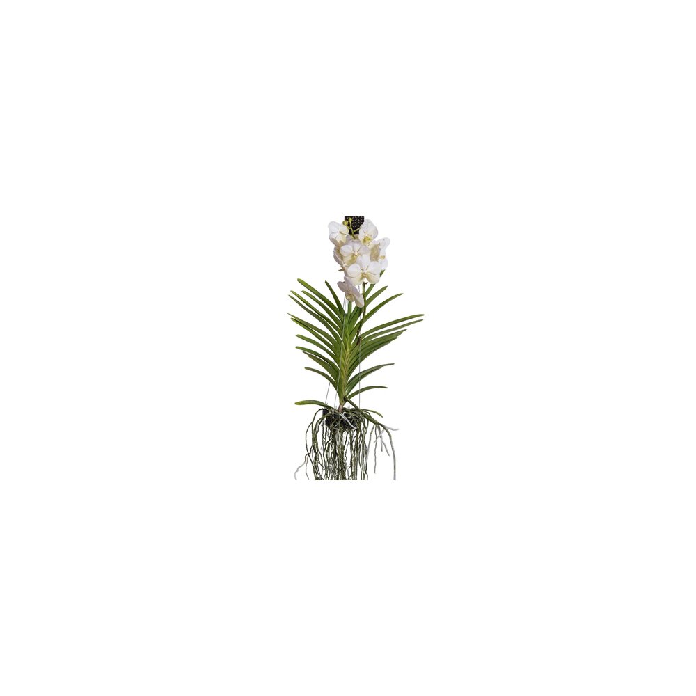 Auf der Suche nach einer besonderen Pflanze? Diese Vanda macht Eindruck und verleiht Ihrem Zimmer einen tropischen Look. Eine Vanda-Orchidee braucht viel Licht zum Blühen. Vermeiden Sie im Sommer direkte Sonneneinstrahlung. Vandas kommen bei normalen Zimmertemperaturen zwischen 18 und 27 Grad Celsius sehr gut zurecht. Bei der richtigen Temperatur und ausreichend Licht wächst die Pflanze das ganze Jahr über aktiv. Hin und wieder brauchen sie ein Bad. Füllen Sie dazu in sonnigen, warmen Perioden zweimal pro Woche das Waschbecken mit Wasser für Vanda. In bewölkten und kühlen Perioden ist dies nur einmal pro Woche erforderlich. Extra Licht in der Blütephase sorgt für eine schöne leuchtende Blütenfarbe. Wenn die Blüten verblüht sind, kann der Blütenzweig herausgeschnitten werden. Nach einigen Monaten erscheint je nach Tageslichteinfall ein neuer Zweig.