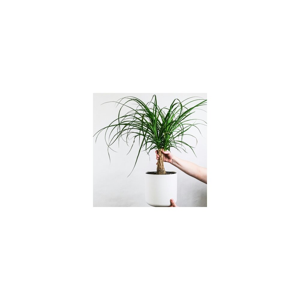 Diese auffällige Pflanze stammt ursprünglich aus Mexiko und ist bekannt für ihren robusten Stamm, der wie ein Elefantenfuß aussieht – daher auch ihr Name in den Niederlanden. In anderen Ländern wird sie wegen ihrer langen, fadenförmigen Blätter auch Pferdeschwanz genannt. Die Beaucarnea verleiht jedem Raum mit ihrem markanten Aussehen ein exotisches Flair und ist dabei nicht nur ein echter Hingucker, sondern auch sehr pflegeleicht. Das macht sie zur idealen Pflanze für alle, die keine grünen Daumen haben, sowie für Büros. Die Beaucarnea benötigt mindestens 5 Stunden direktes Sonnenlicht pro Tag. Daher ist der ideale Platz für diese Pflanze direkt vor einem Fenster. Bekommt die Pflanze nicht genügend Licht, bildet sie keine frischen Blätter und ist außerdem anfälliger für Wurzelfäule. Die Beaucarnea benötigt nicht viel Wasser, da sie Wasser in ihrem Stamm speichert. Fühlen Sie die Erde einfach mit den Fingern, bevor Sie die Pflanze gießen. Wasser braucht es erst, wenn sich der Boden eine Zeit lang trocken anfühlt. Im Winter benötigt die Pflanze weniger Wasser als im Sommer. Machen Sie sich keine Sorgen, wenn die Pflanze im Winter mehrere Wochen lang trocken ist.