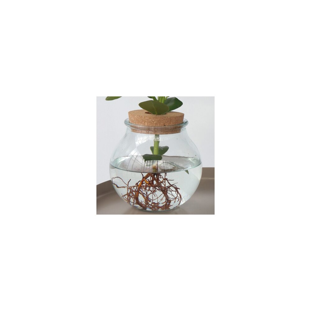 Hydroponik ist einer der neuesten Trends in der Pflanzenwelt. Hydroponik ist eine Methode des Pflanzenanbaus ohne Erde, bei der die Pflanzen alle wichtigen Nährstoffe durch Wasser erhalten. Mit dieser Technik kann man nicht nur das schöne Aussehen der Blätter genießen, sondern auch das Wachstum der Pflanzenwurzeln beobachten. Außerdem sind Hydrokultur-Pflanzen sehr pflegeleicht. Alles, was Sie tun müssen, ist, das Wasser alle zwei Wochen aufzufrischen. Diese schöne Hydrokulturpflanze wird bereits fertig geliefert. Alles, was Sie tun müssen, ist Wasser hinzuzufügen. Und natürlich einen schönen Platz aussuchen! Clusien sind sehr starke und robuste Pflanzen mit festen, ledrigen Blättern, die auch im Wasser gut wachsen. Die Wurzeln passen sich dem Wasser an und entwickeln Wasserwurzeln. Die Pflanze bevorzugt einen hellen Standort, jedoch nicht in der vollen Sonne. Füllen Sie das Glas bis zum grünen Stiel der Clusia mit Wasser, sodass die Wurzeln immer unter Wasser stehen. Wechseln Sie das Wasser alle zwei Wochen, ganz einfach!