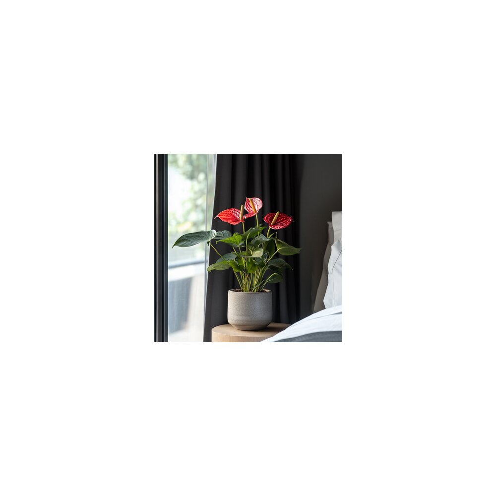 Die Anthurie, auch als Flamingopflanze bekannt, ist für ihre schönen subtropischen Blüten bekannt. Die Pflanze ist in den Regenwäldern Südamerikas beheimatet. Die Flamingopflanze ist eine der wenigen blühenden Zimmerpflanzen, die das ganze Jahr über blühen. Die Pflanze blüht drei Monate lang, einige Monate nicht und dann wieder drei Monate lang. Die Flamingopflanze ist nicht nur wunderschön, sondern auch pflegeleicht, so dass sie auch im Büro ein echter Blickfang ist. Die Wurzeln der Anthurium können auch auf Wasser gelegt werden. Spülen Sie die Erde von den Wurzeln ab und stellen Sie die Pflanze in eine Vase mit Wasser. Achten Sie darauf, dass die Wurzeln unter Wasser stehen, aber die Blätter das Wasser nicht berühren. Die Anthurie ist sehr pflegeleicht. Gießen Sie mäßig und halten Sie die Erde leicht feucht, ohne sie zu überschwemmen. Stellen Sie die Pflanze an einen hellen Platz mit gefiltertem Sonnenlicht oder in den Halbschatten. Die ideale Temperatur liegt zwischen 18 und 22 Grad Celsius. Denken Sie daran, dass diese Pflanze giftig sein kann und stellen Sie sie außerhalb der Reichweite von Haustieren und kleinen Kindern auf. Dank der langen Blütezeit und der geringen Pflege bringt diese Anthurie das ganze Jahr über Farbe in Ihr Zuhause.