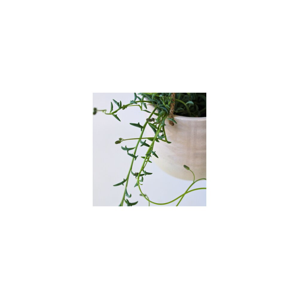 Diese besondere Zimmerpflanze wird auch Delfinpflanze oder Delfinkette genannt. Denn die Blätter dieser niedlichen Pflanze sehen aus wie springende Delfine! Der Stil dieser Pflanze passt perfekt in industrielle Innenräume, beispielsweise im Wohn- oder Schlafzimmer. Ein großer Vorteil ist, dass der Senecio Peregrinus gerne an einem Standort mit direkter Sonneneinstrahlung steht, sodass er direkt vor dem Fenster gut zurechtkommt. Da die Delfinpflanze eine Sukkulente ist, benötigt sie sehr wenig Wasser. Im Sommer benötigt die Pflanze nur einmal alle 2 Wochen Wasser, im Winter sogar einmal im Monat. Wenn Sie Zweifel haben, ob Sie die Pflanze erneut gießen sollten, können Sie dies anhand der Delfine erkennen. Wenn diese beginnen, etwas zu schrumpfen, ist der Wasservorrat fast erschöpft und die Pflanze hat Durst.