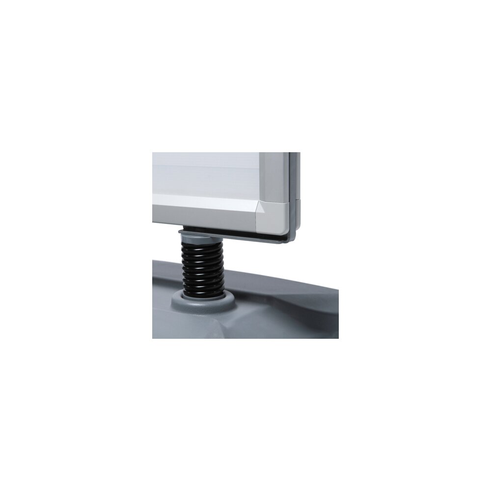 Ausgezeichnete Stabilität, mit wasser- oder Sand gefüllten Sockel und verstärkten Qualitätsstahlfedern sowie trittfester Mittelplatte. Optimieren Sie Ihre Werbung mit dem Prospekthalter oder dem Topschild. Klassischer Kundenstopper; geeignet für die meisten Außenanwendungen.