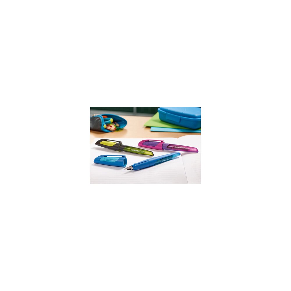 Der STABILO EASYbuddy ist der optimale Begleiter für kleine Helden und Heldinnen in der Grundschule. In ihm steckt das ganze Expertenwissen der STABILO Ergonomie-Profis, sodass ihren Kindern das Finden der richtigen Schreibtechnik einfacher fällt und sie jede Menge Spaß am Schreiben haben. Die universelle, rutschfeste Soft-Griffzone des ergonomischen Schulfüllers sorgt für sicheren Halt, was ein entspannte Stifthaltung fördert und einem frühzeitigen Ermüden der Muskulatur vorbeugt. Eine für den STABILO EASYbuddy speziell entwickelte Technologie minimiert zudem das Risiko des Auslaufens der Tinte. Nachfüllbar ist der Füller mit zwei Standardpatronen oder einer Großraumpatrone. Das extra große Sichtfenster sorgt für die leichte Kontrolle des Tintenstandes bei beiden Patronen.