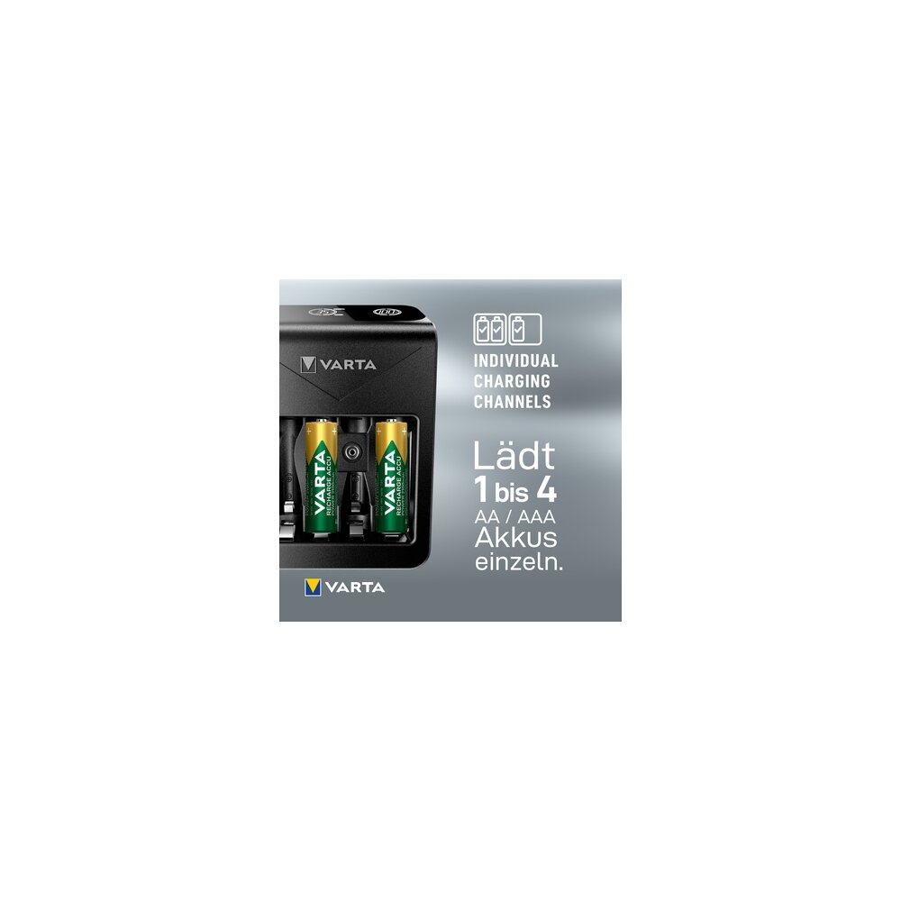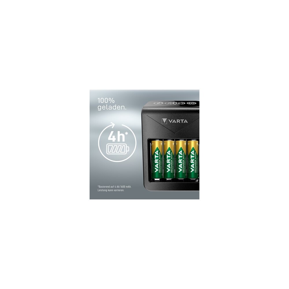 Anwenderoptimierte Lader mit Einzelschachtladung, benutzerfreundlichen Displays und hochwertigem Design. Lädt Batterien und ein USB-Gerät zur selben Zeit. Verbesserte Erkennung von defekten Zellen. Ladezeit basierend auf 4 x AA 1.600 mAh. Die Leistung kann variieren. Ein Sicherheitstimer schaltet nach einer bestimmten Zeit ab, unabhängig vom Ladestatus.